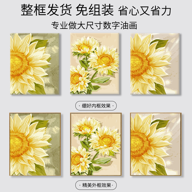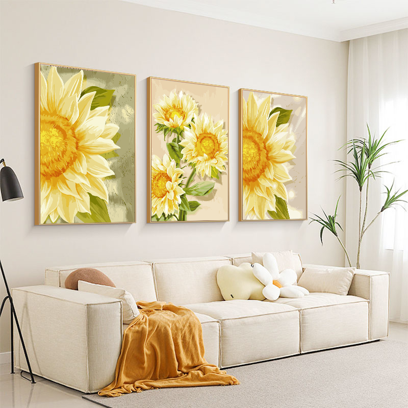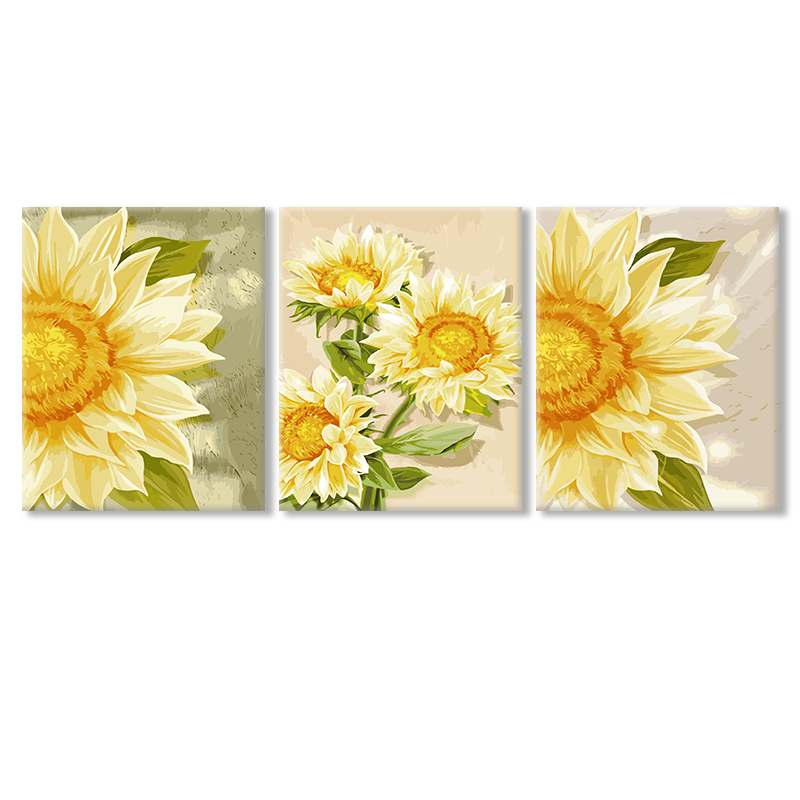 diy数字油画三联三拼填色填充客厅沙发花卉手工手绘油彩画装 饰画