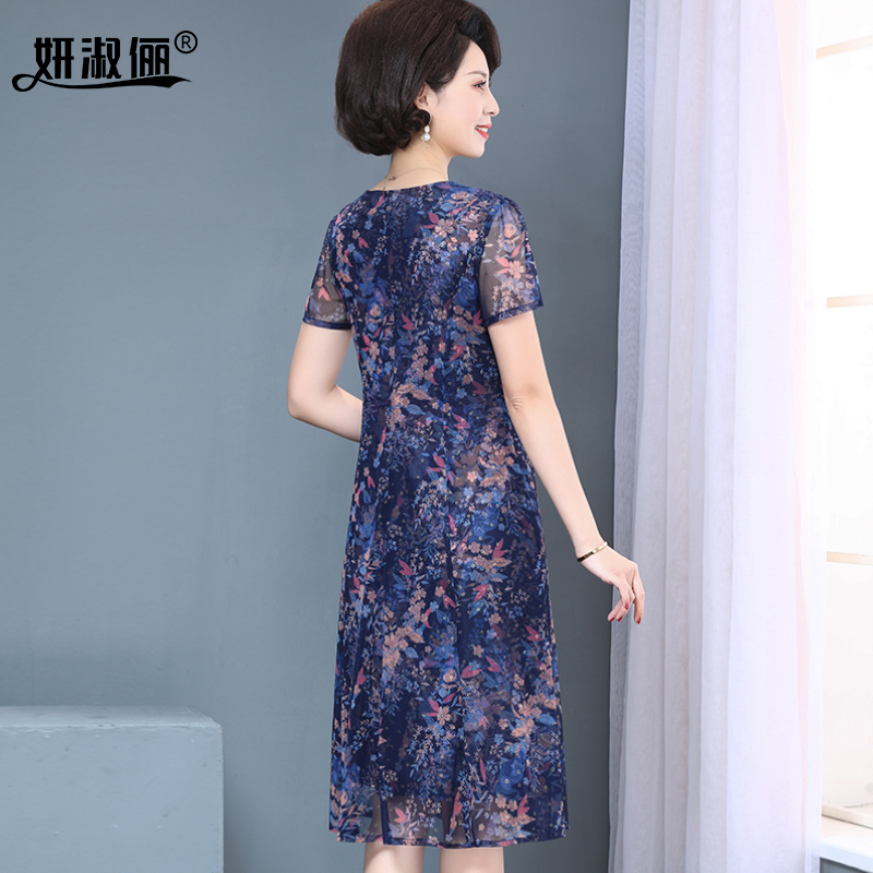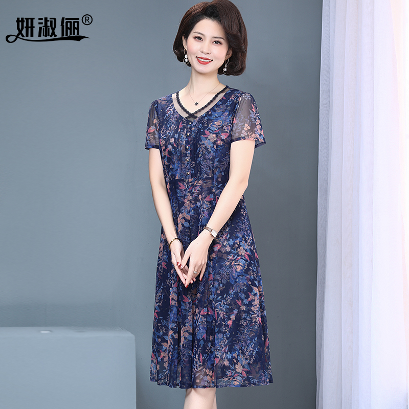 台湾纱中年女装 时尚 高贵夫人气质裙子 连衣裙新款 老年漂亮妈妈夏季