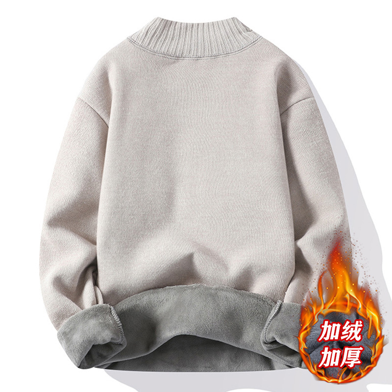 中青年宽松圆领衫 雪中飞毛衣男秋冬季 外穿内搭加绒加厚保暖针织衫