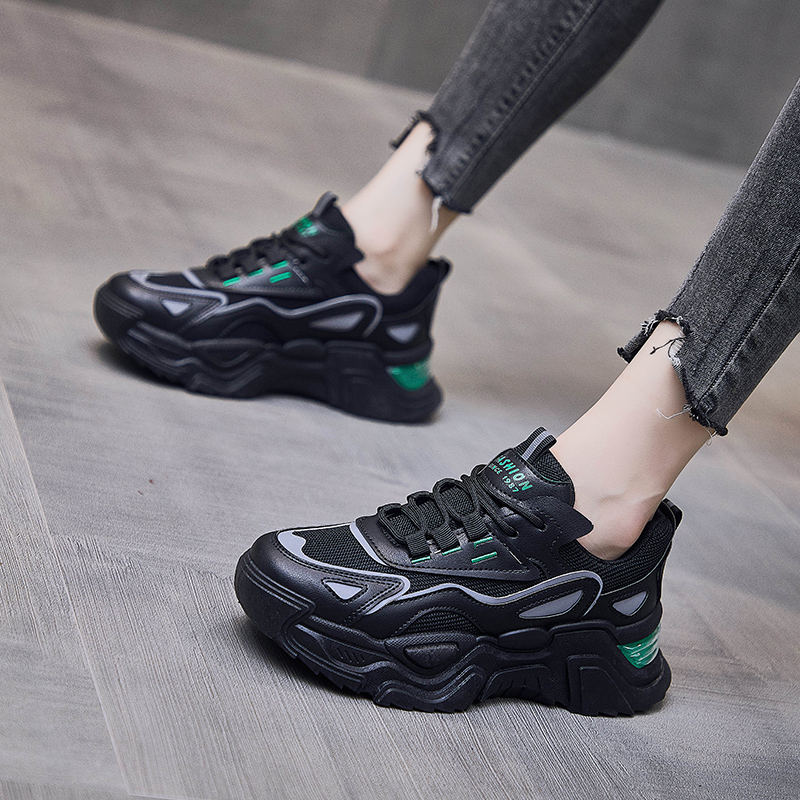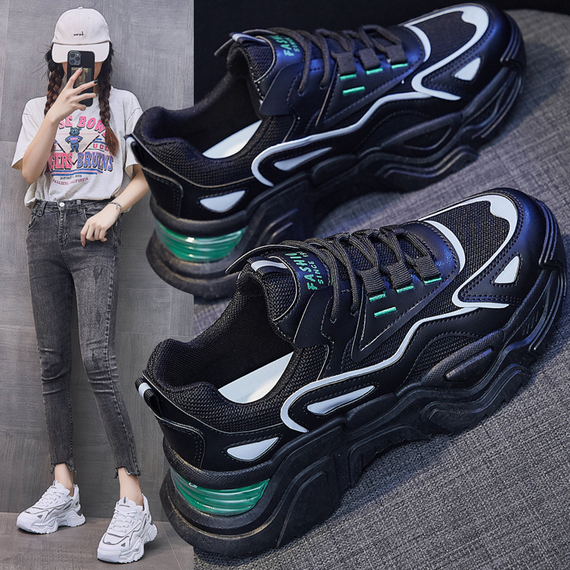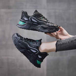 41一43老爹鞋 防滑女鞋 女款 全黑色上班工作鞋 宽胖脚休闲运动鞋 大码