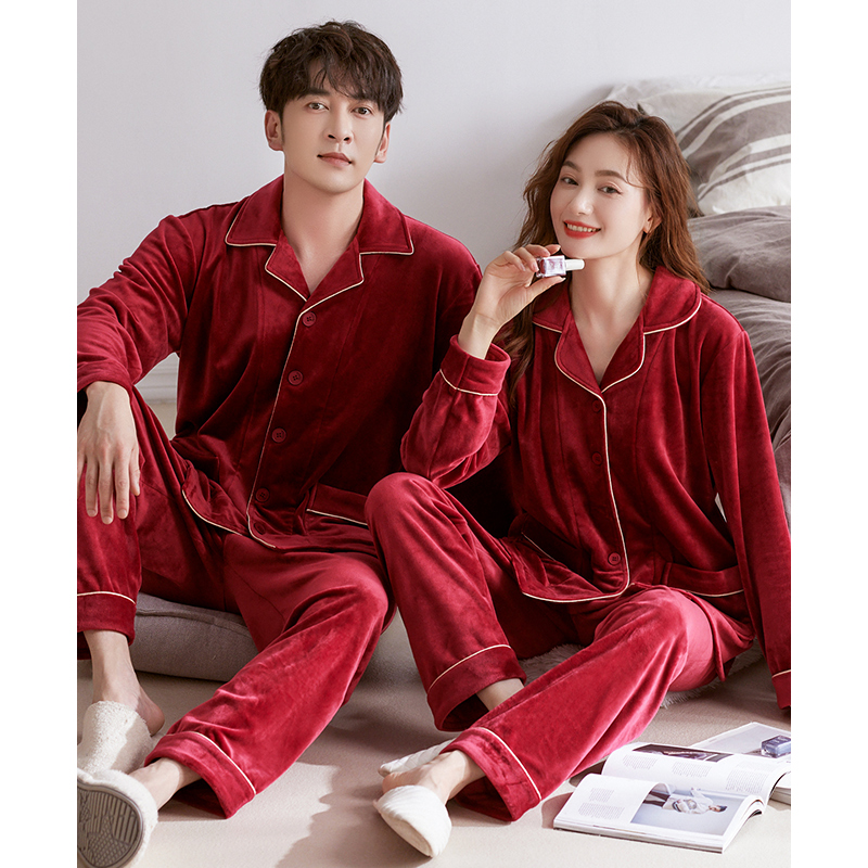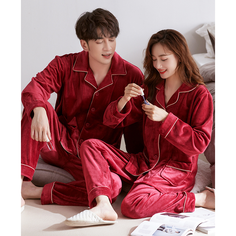 情侣睡衣女冬季 珊瑚绒加厚加绒红色本命年新婚男秋冬法兰绒家居服