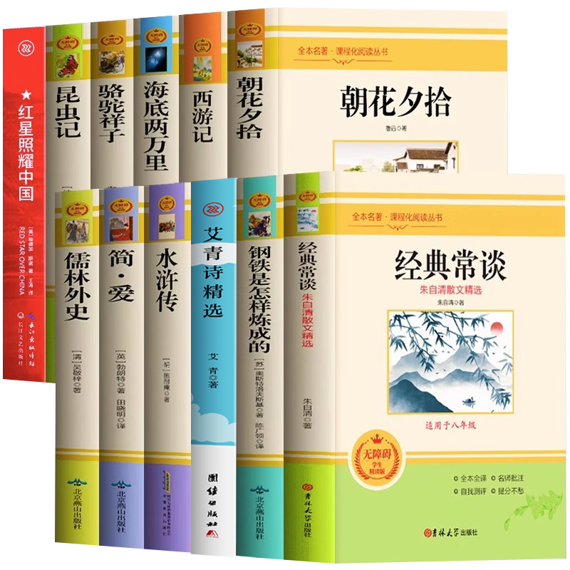 艾青诗选水浒传昆虫记正版 正版 常谈朱自清文集朝花夕拾西游记钢铁是怎样炼成 经典 原著书籍儒林外史 12册七八九年级世界名著书