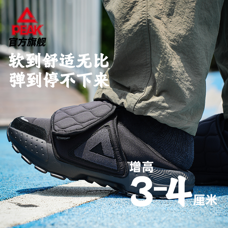 态极一脚蹬男冬季 运动鞋 黑色棉鞋 女休闲鞋 懒人鞋 匹克大三角面包鞋