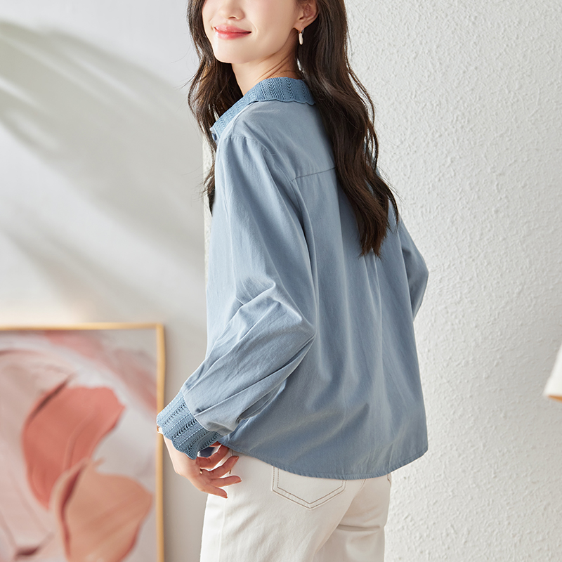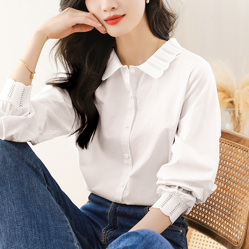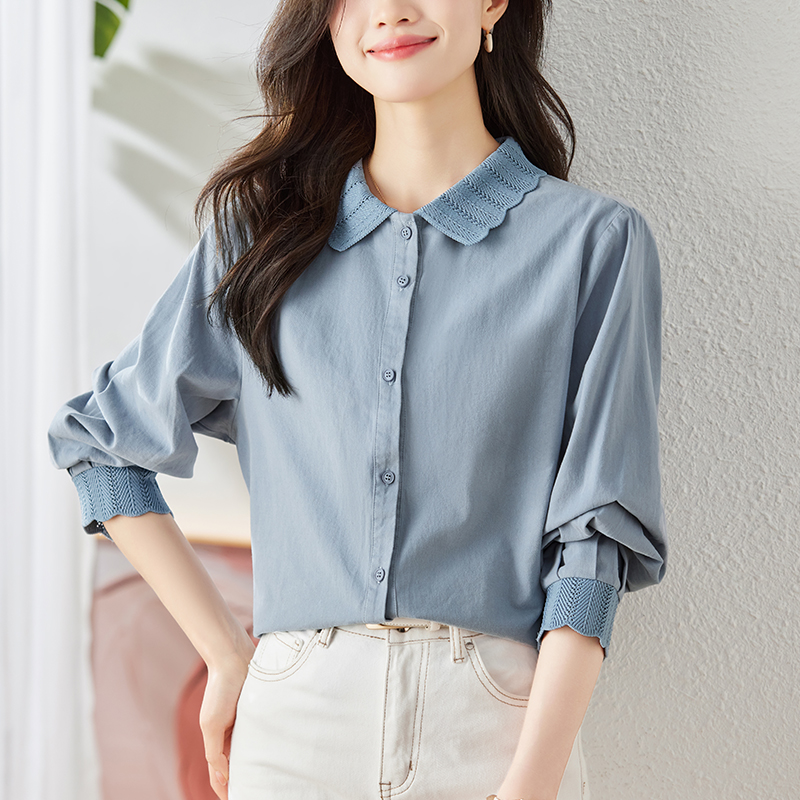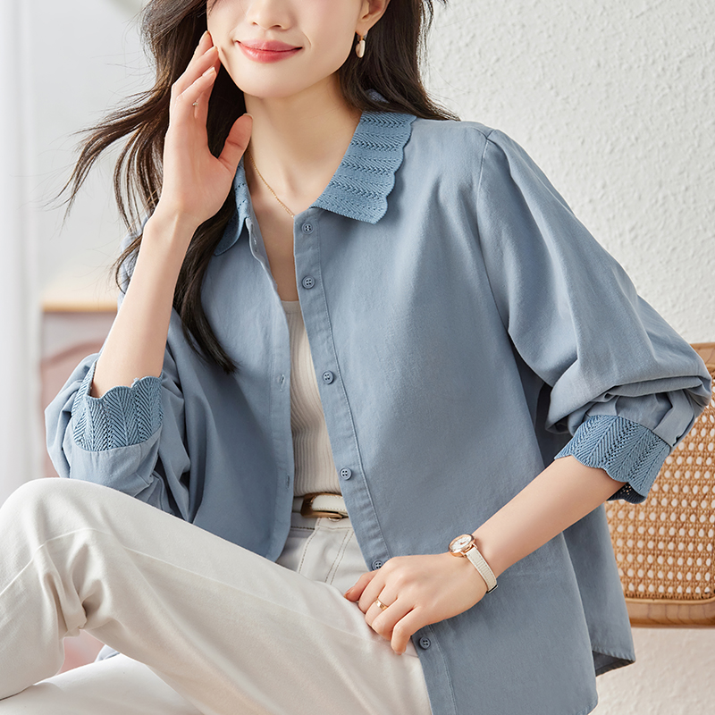 新款 秋装 设计感别致上衣纯棉气质衬衣 女长袖 初影杏色显肤白衬衫