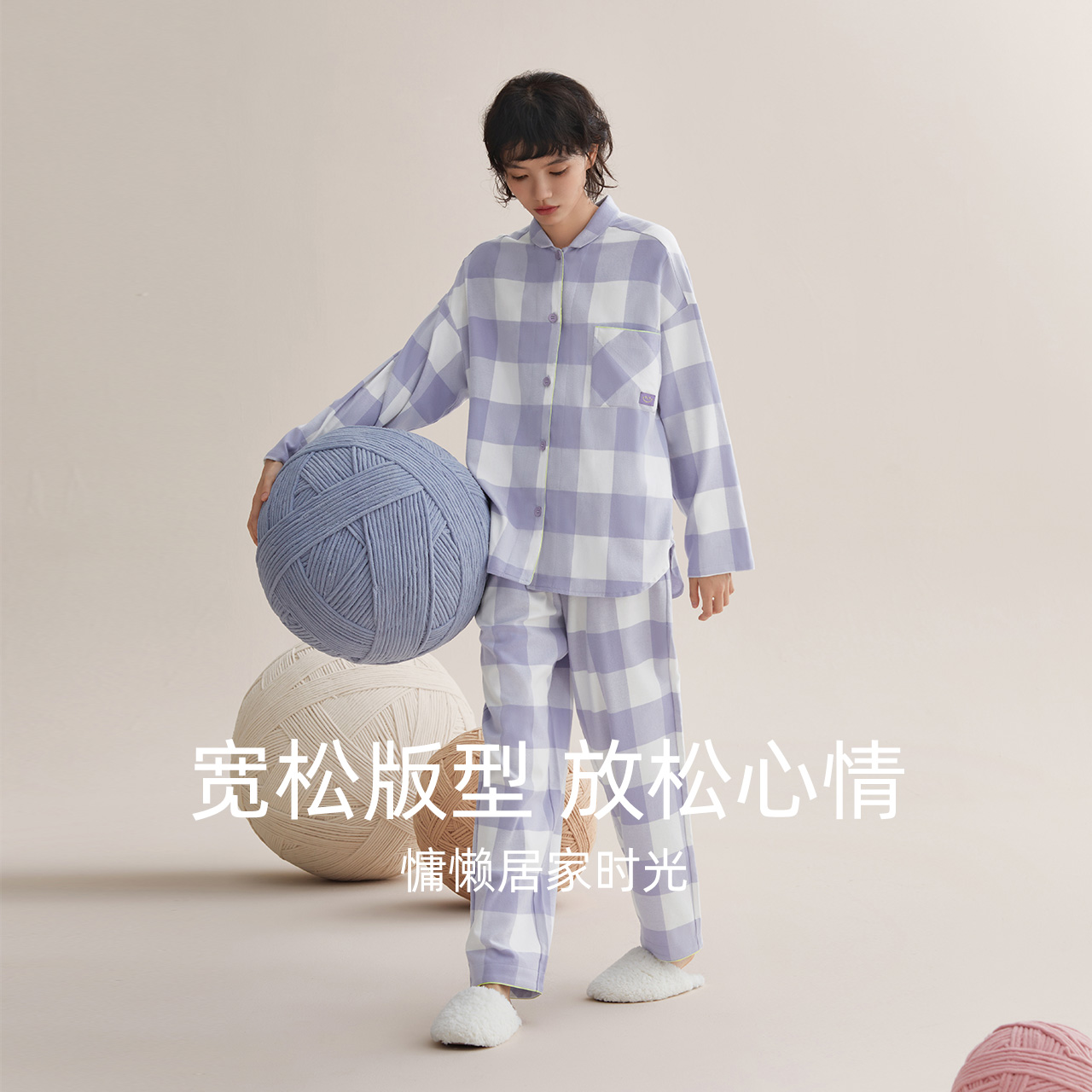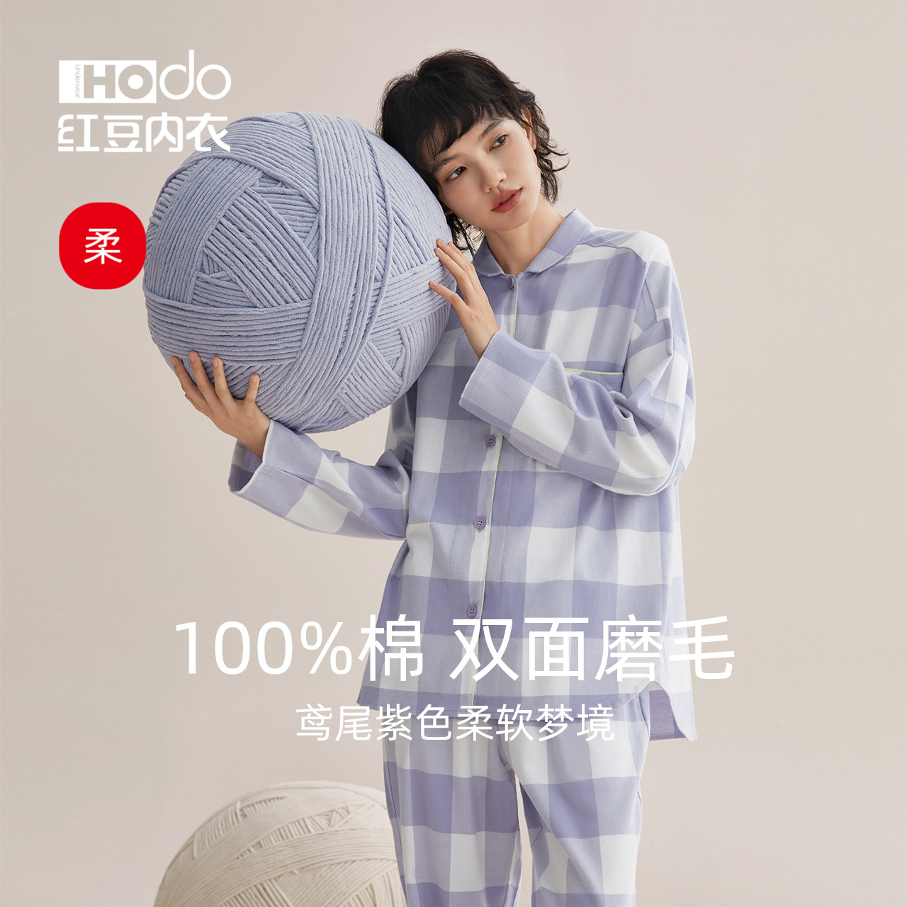 宽松超柔软翻领家居服套装 纯棉睡衣女士春秋款 红豆磨毛长袖