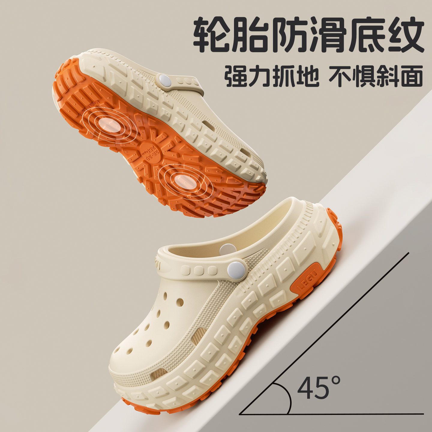 户外防滑沙滩鞋 朴西奶酪情侣厚底踩屎感洞洞鞋 包头拖鞋 夏季 男 女款