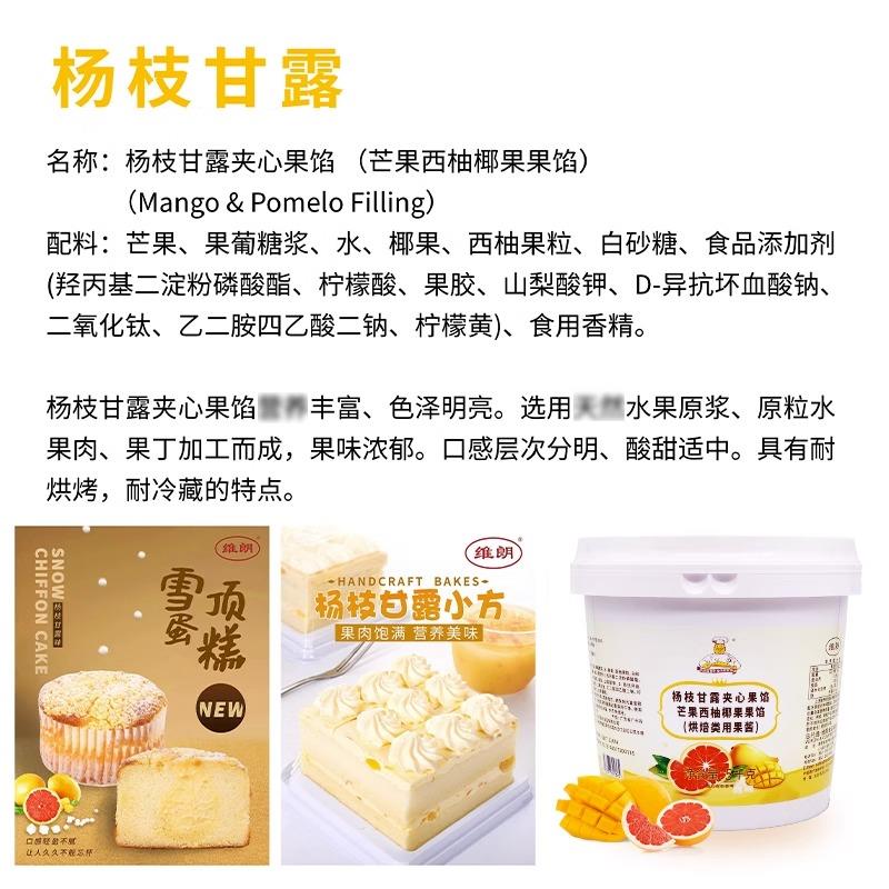 维朗杨枝甘露夹心果馅5kg芒果西柚椰果蛋糕面包夹心果馅烘焙原料