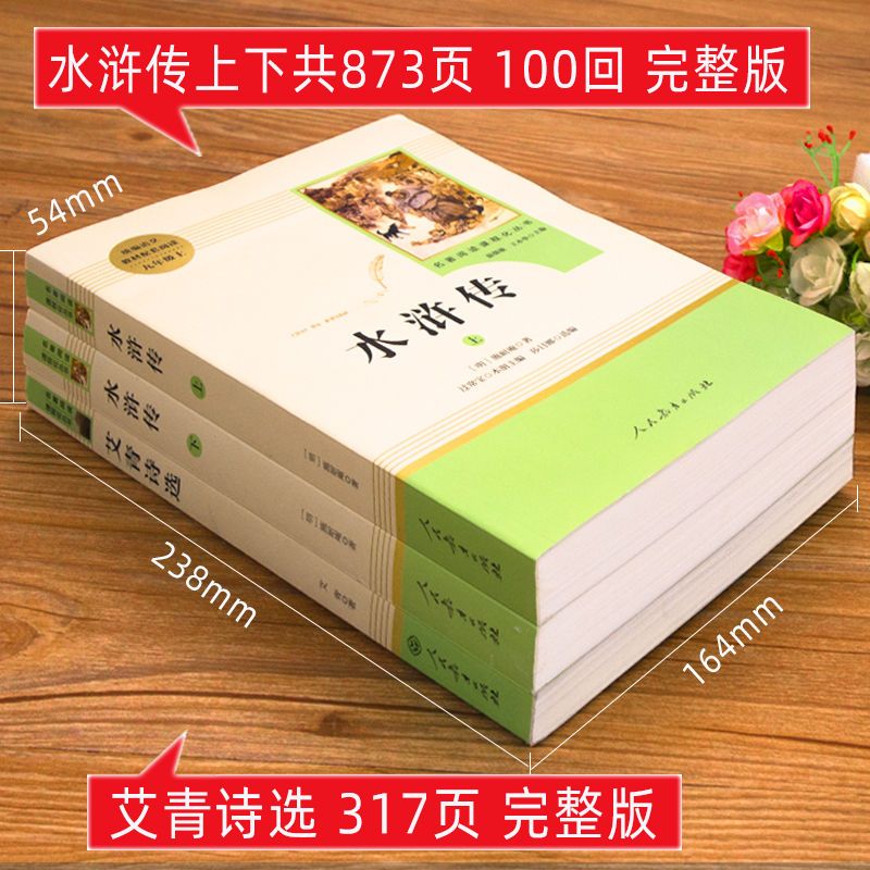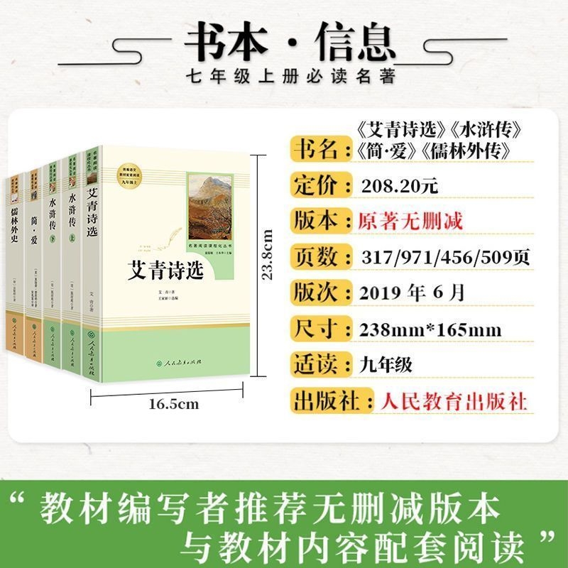 九年级上册必读课外书唐诗三百首泰戈尔诗选世说新语聊斋志异初中语文教材名著阅读原著完整版 艾青诗选水浒传人民教育出版 社正版