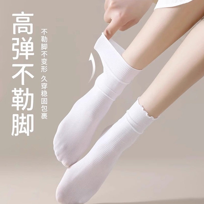 薄款 夏季 无骨月子袜花边中筒袜搭配小皮鞋 白色袜子女堆堆袜春秋季