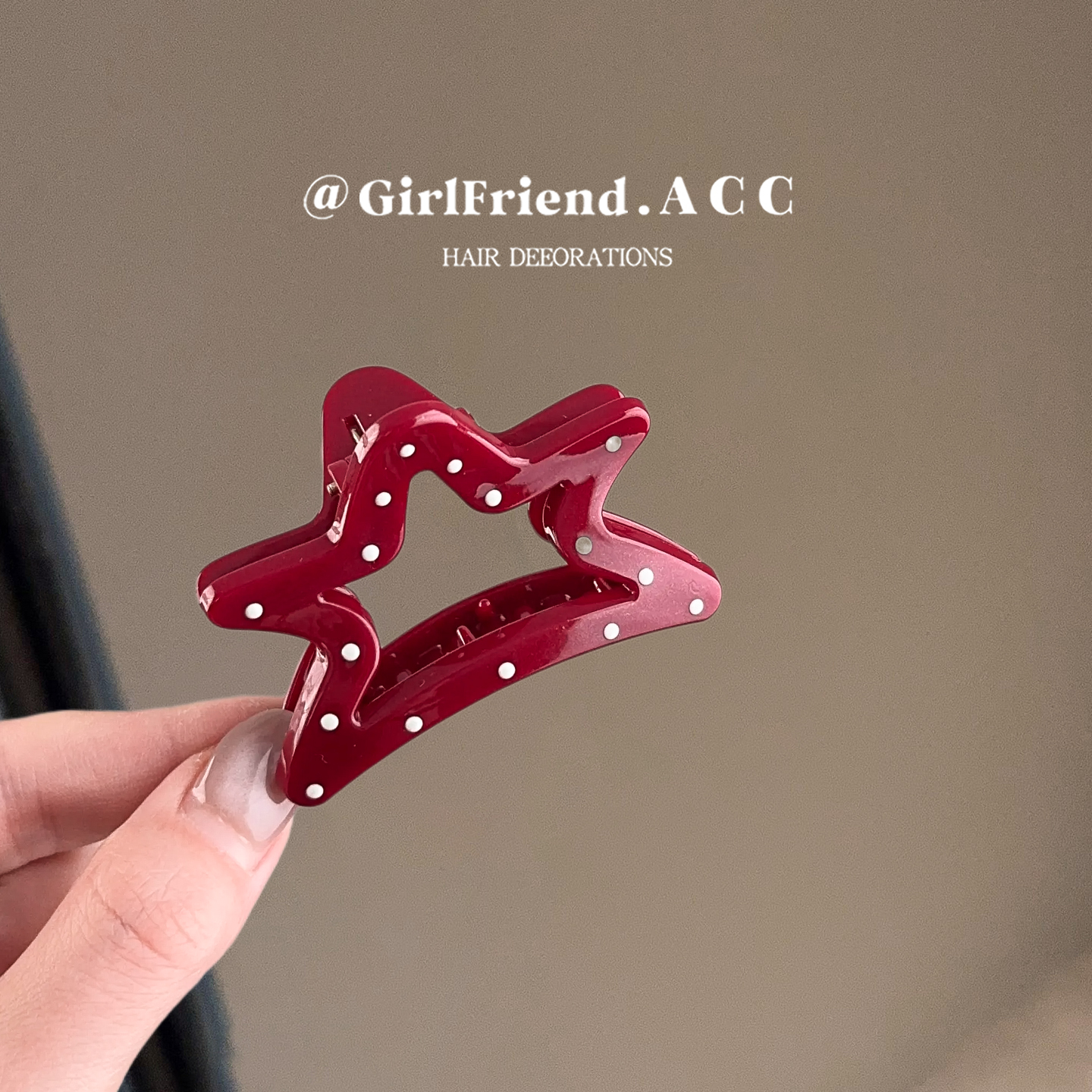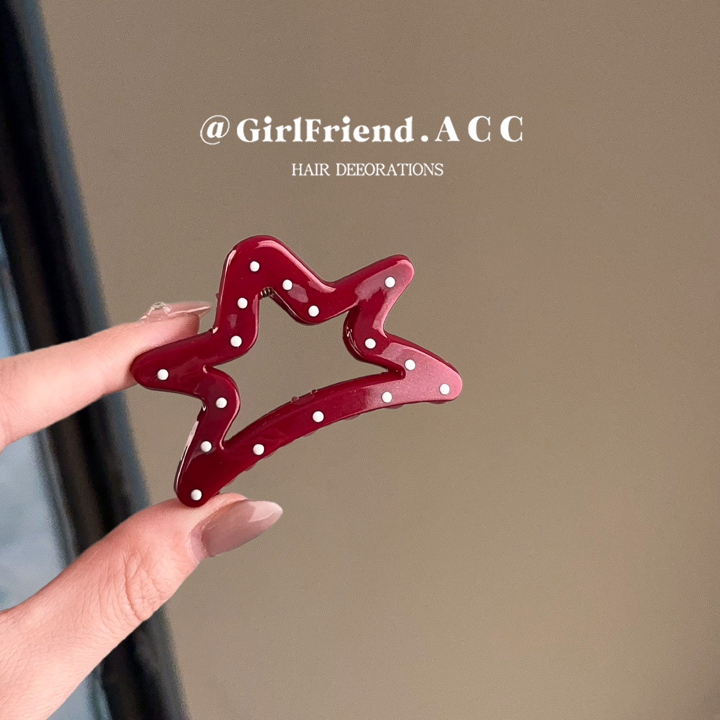 甜美小众红色星星小抓夹半扎发高级感复古百搭发抓精致发夹后脑勺
