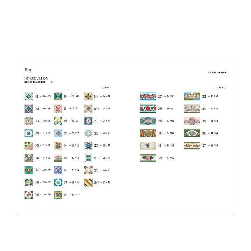 设计图辑X色号股数X刺绣技法X布置灵感 日系美学?复古花砖十字绣:64款 零基础复刻大正昭和 古董纹样 中文 港台进口原版 预售