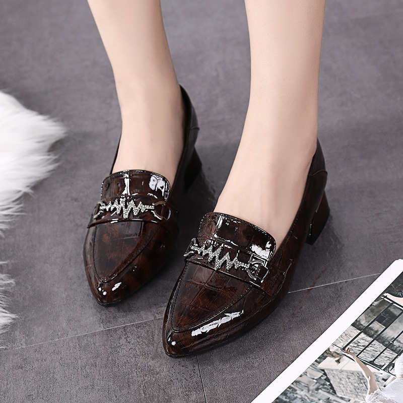 百搭软皮粗跟大码 新款 女鞋 尖头妈妈皮鞋 漆皮单鞋 女2025夏季