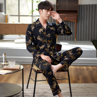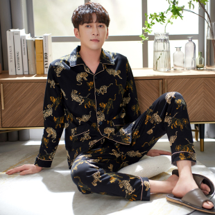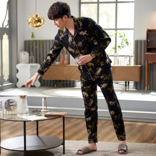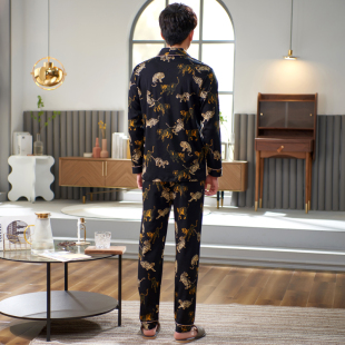 睡衣春秋款 黑色家居服套装 纯棉长袖 可外穿开衫 高级感2025新款 男士