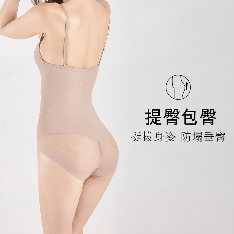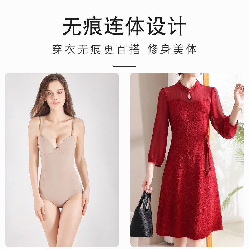 无痕束身美体内衣女 薄款 吊带连体塑身衣带胸罩一体式 收腹束腰夏季