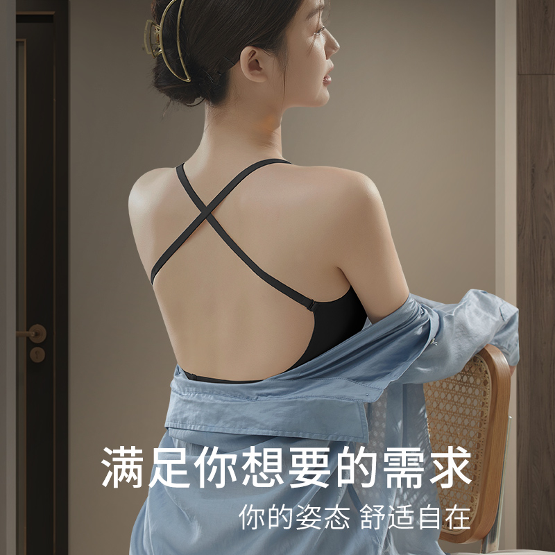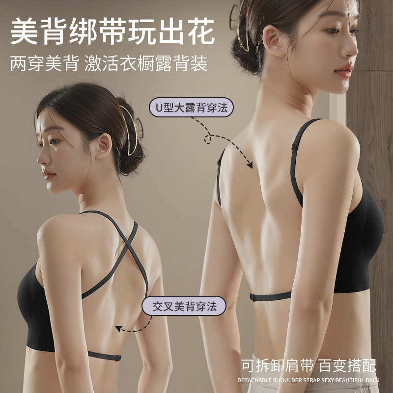 无痕露背文胸 薄款 U型美背内衣女2025爆款 带胸垫外穿背心一体夏季