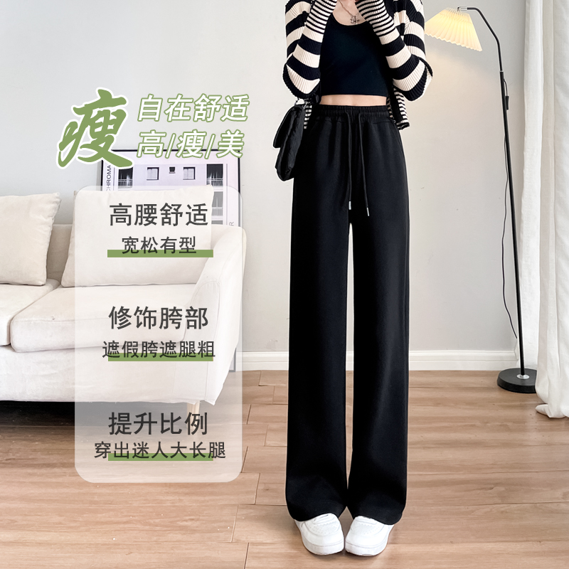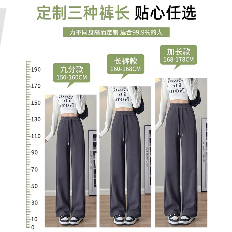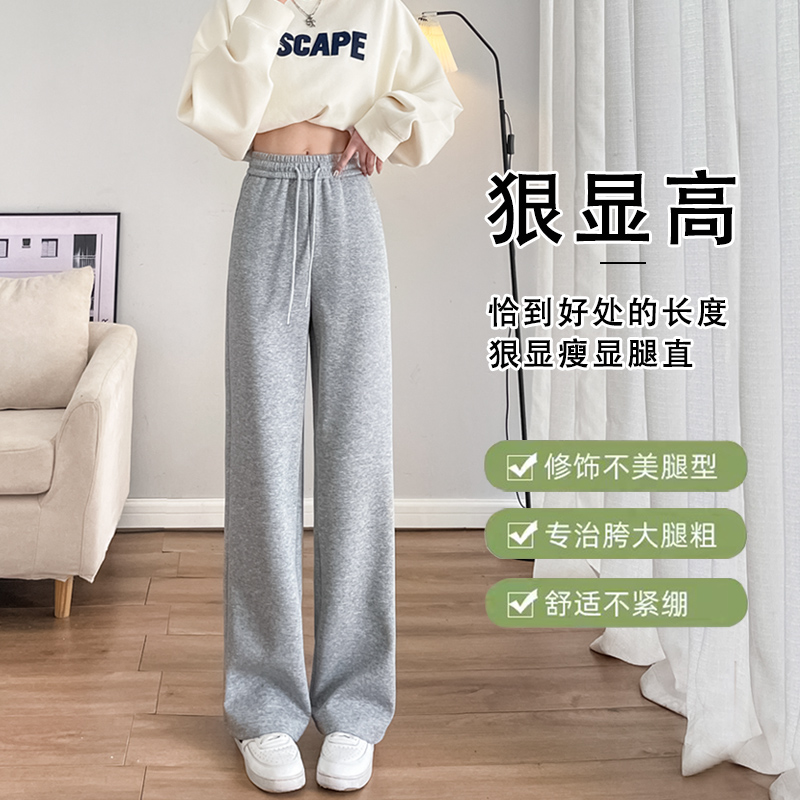 秋冬加绒运动休闲女裤 女春秋灰色2025小个子直筒卫裤 子 阔腿裤 窄版