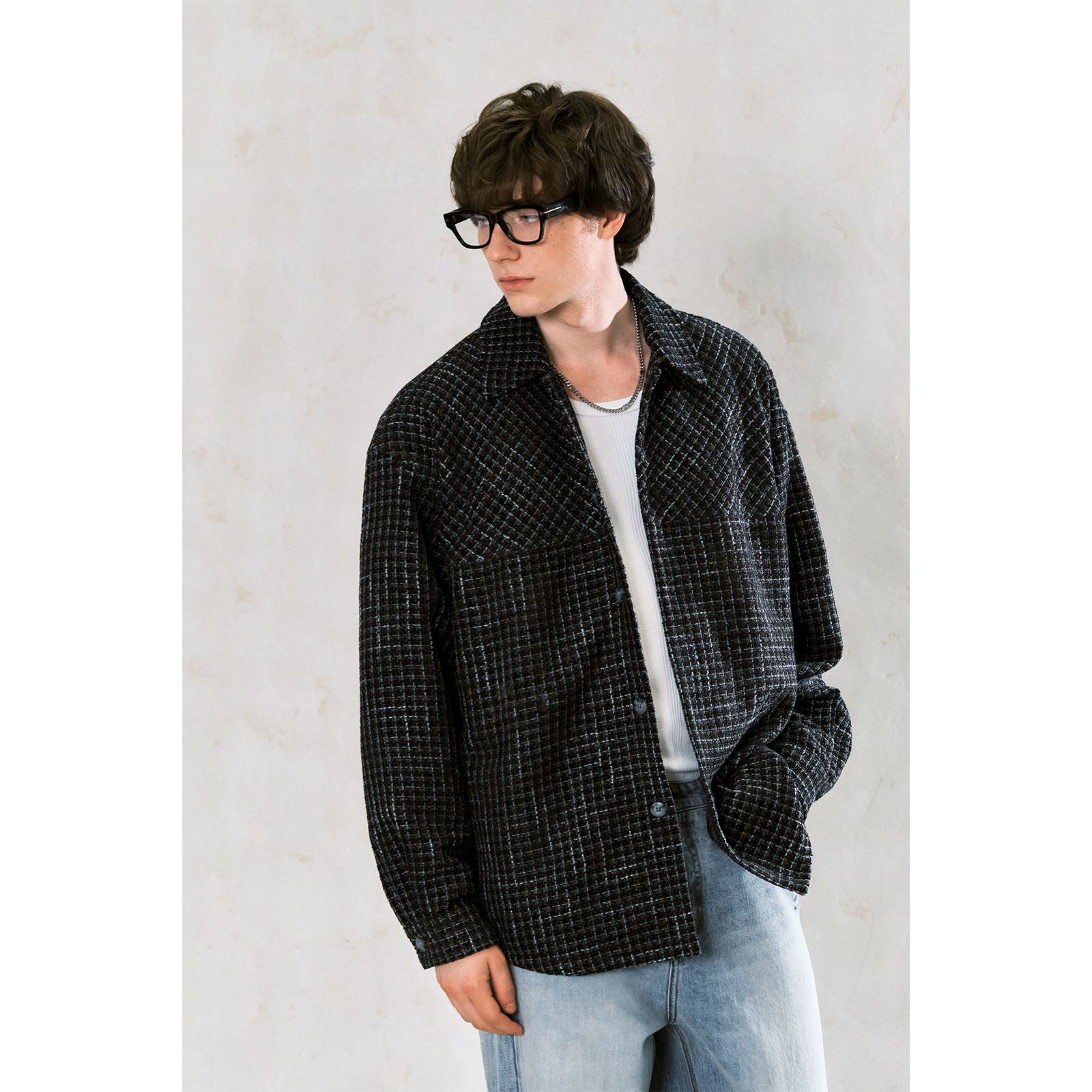 潮流复古衬衫 新款 外套 纹肌理拼接夹克2025秋季 Lilbetter小香风格