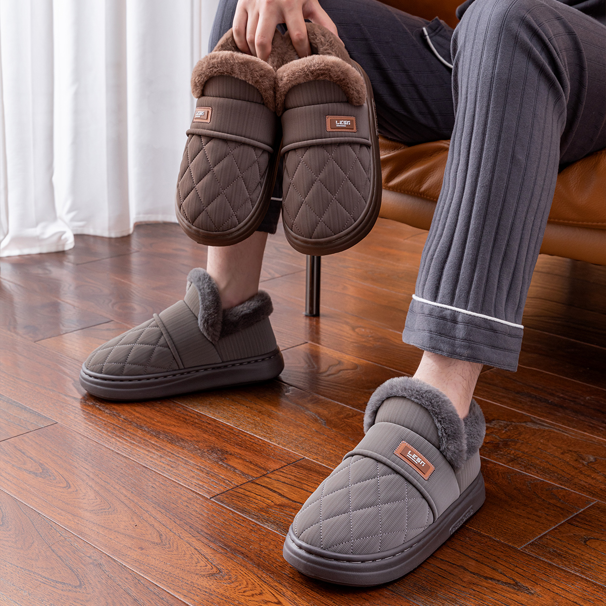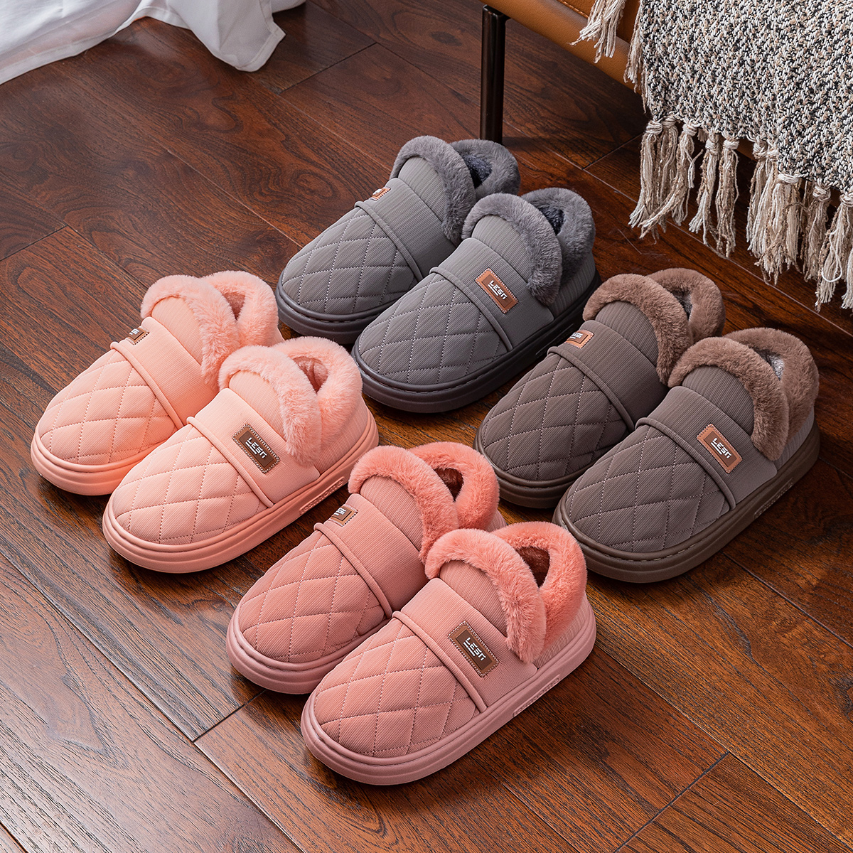 家居厚底保暖棉鞋 冬季 老人 女士防滑外穿包跟2025新款 带后跟棉拖鞋