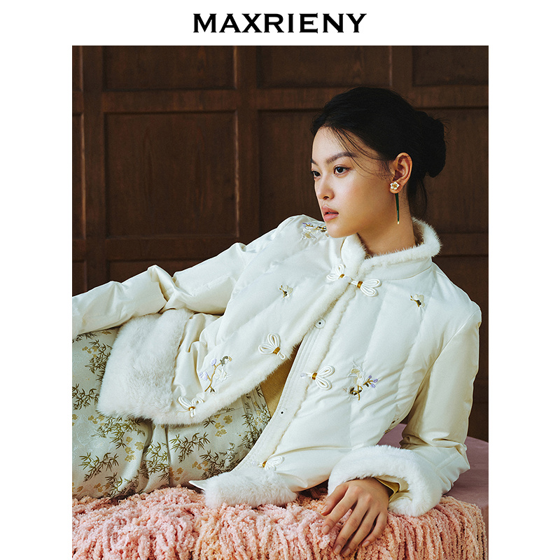 女装 新款 刺绣盘扣外套2024冬季 MAXRIENY金蝶玉竹羽绒服贵雅新中式