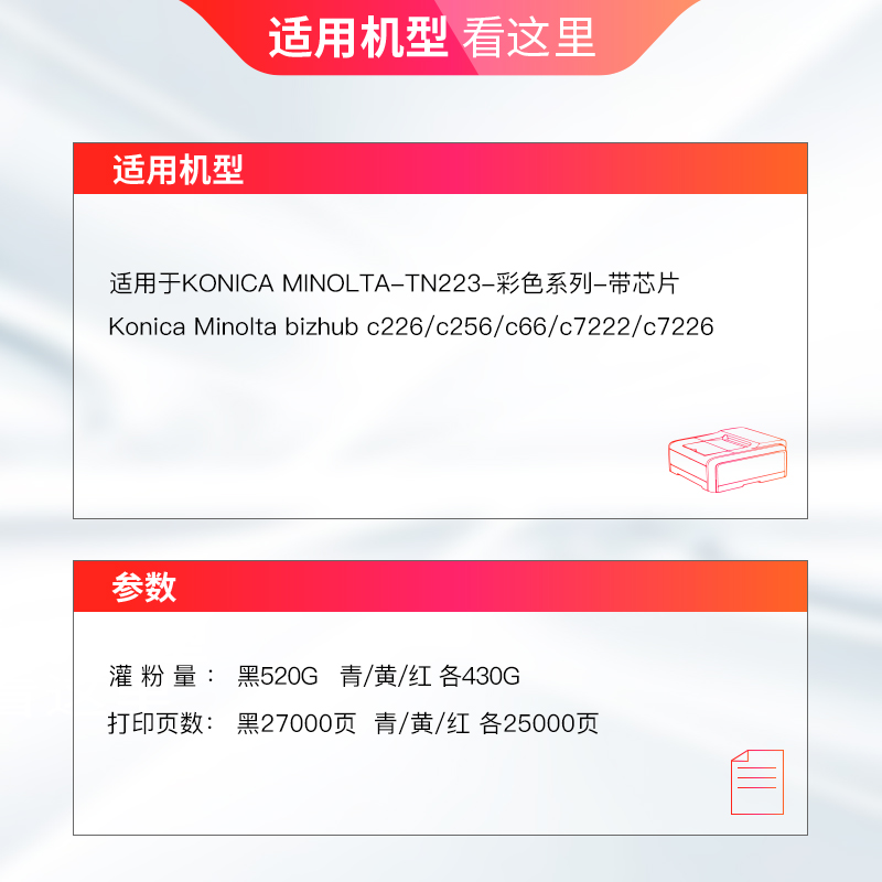 C7226 C256碳粉 C266墨粉盒 柯美7226高容量粉筒 C7222 天威TN223粉盒适用柯尼卡美能达C226 DR215K