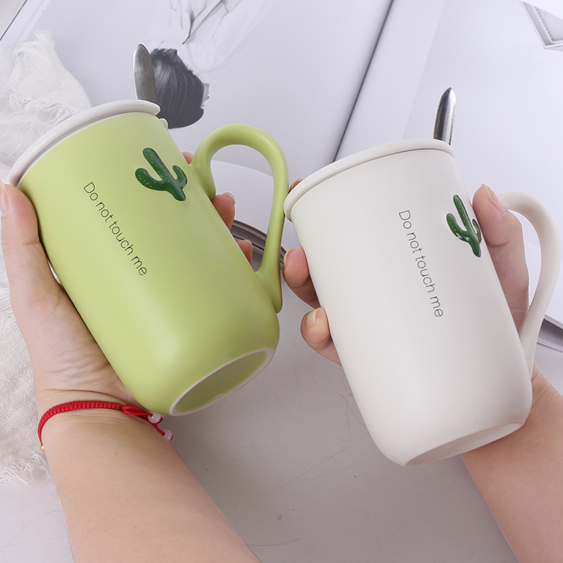 马克杯带盖勺陶瓷杯子女士新款 家用喝茶水杯男办公室咖啡杯高颜值