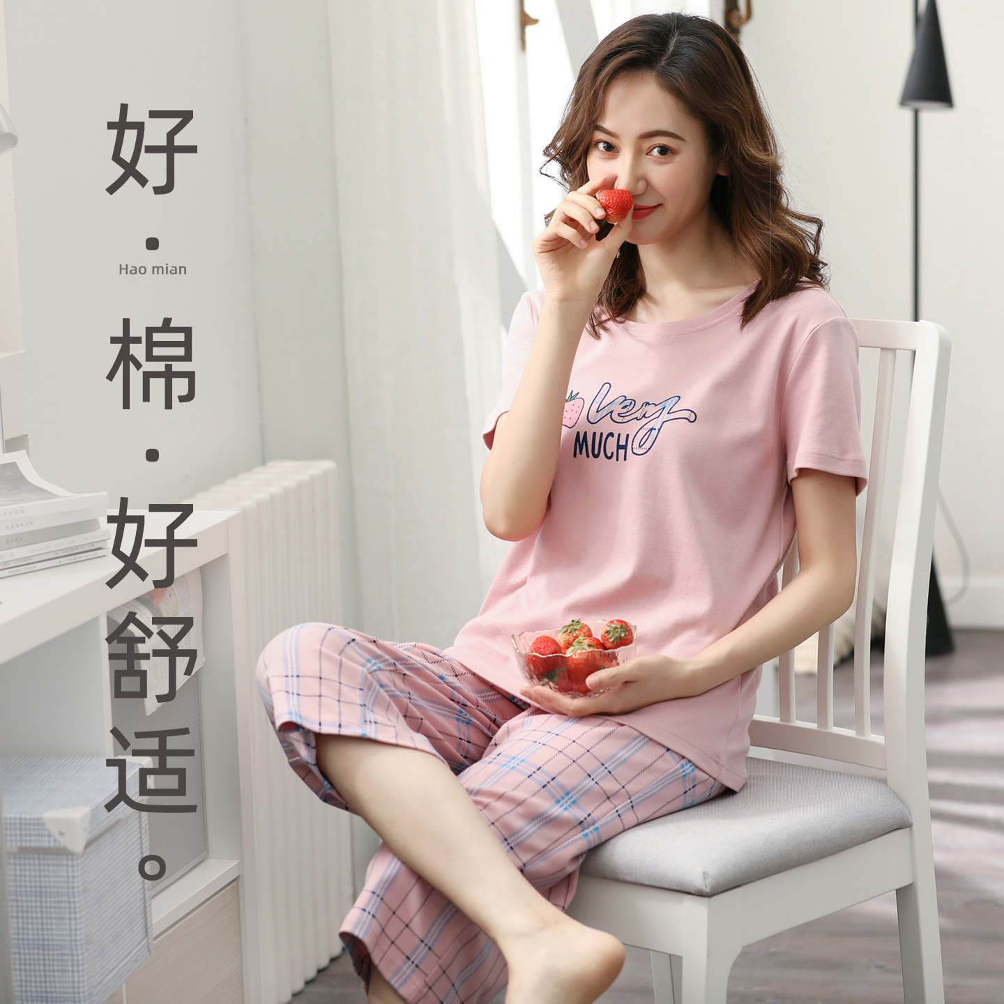 两件套装 睡衣女夏季 冰丝中老年棉绸家居服人造棉短袖 绵绸套装 薄款