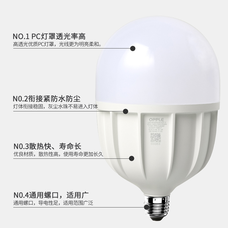 opple欧普照明led灯泡节能灯E27螺口球泡20瓦30W螺旋40W超亮50W