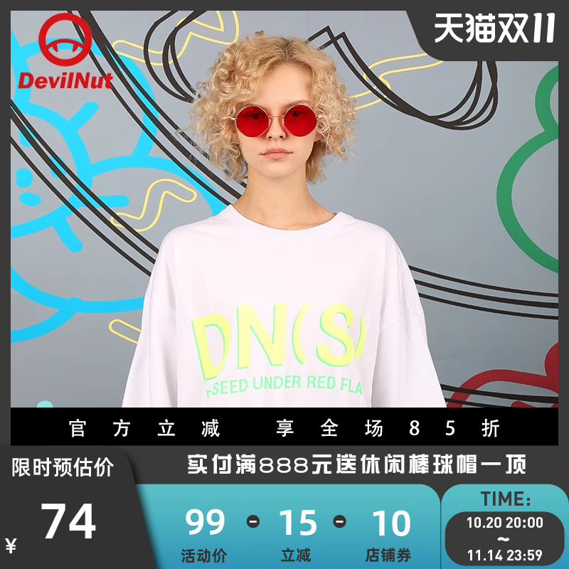 DNS 潮牌 夏新款 男女情侣白色宽松短袖 STY DEVIL T恤 NUT小恶魔