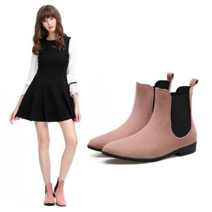 学生套脚鞋 雨靴女韩国成人防水鞋 时尚 短筒胶鞋 绒布短靴 防滑雨鞋