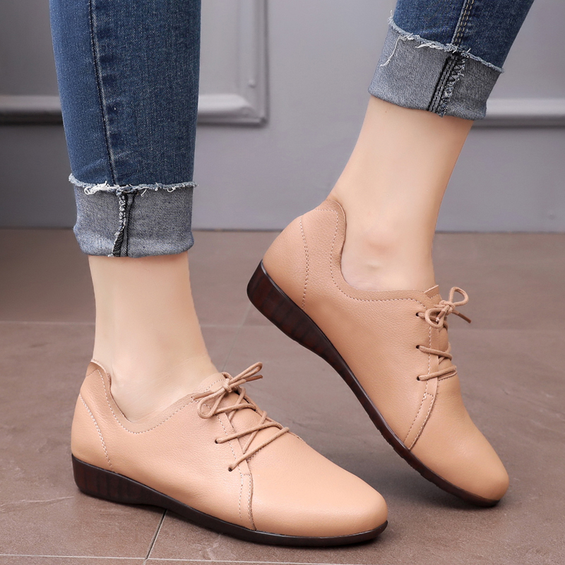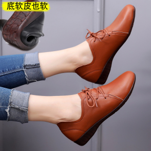 女平底单鞋 春秋奶奶鞋 时尚 圆头妈妈鞋 2025新款 软底舒适真皮鞋 女鞋