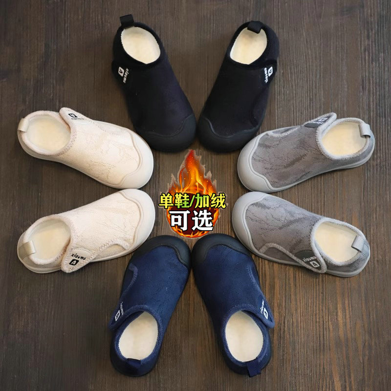 男孩家居二棉鞋 儿童幼儿园室内鞋 子秋冬薄绒小白鞋 宝宝鞋 男童布鞋