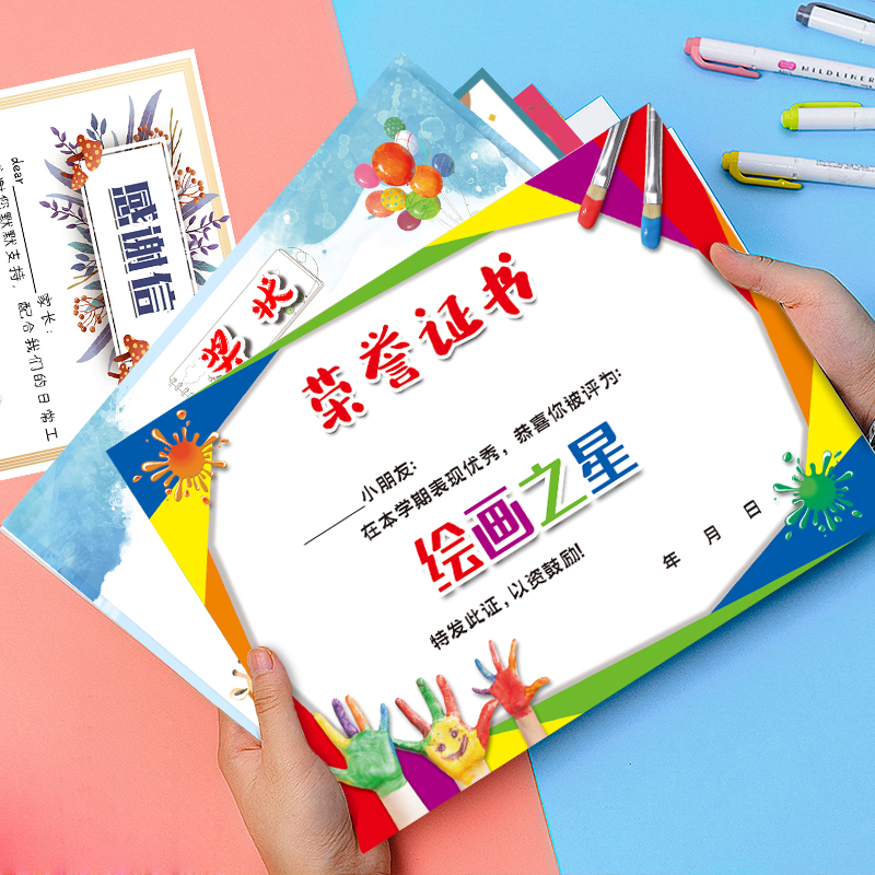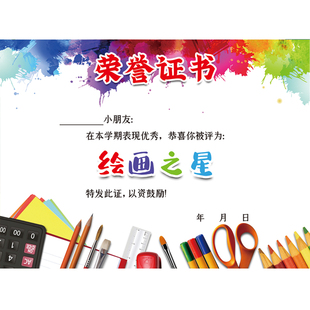 绘画之星 创意定制 纸加厚 培训班美术奖状 幼儿园奖状 小学 绘画达人 奖状 小小绘画家 卡通蜡笔a4铜版 与优