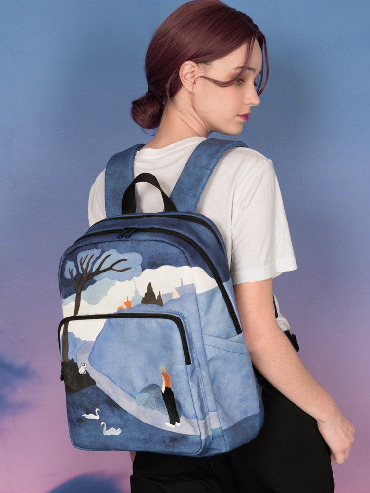 YIZISTORE原创大容量帆布高中学生书包风景印花双肩包女休闲背包