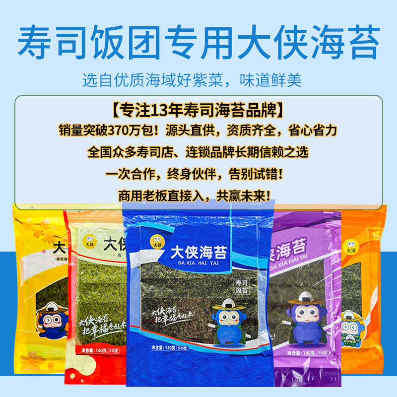 大侠寿司海苔专用大片50张做紫菜片包饭材料食材商用套装 工具全套