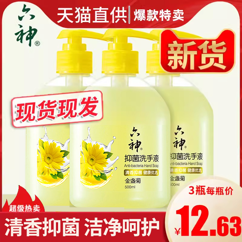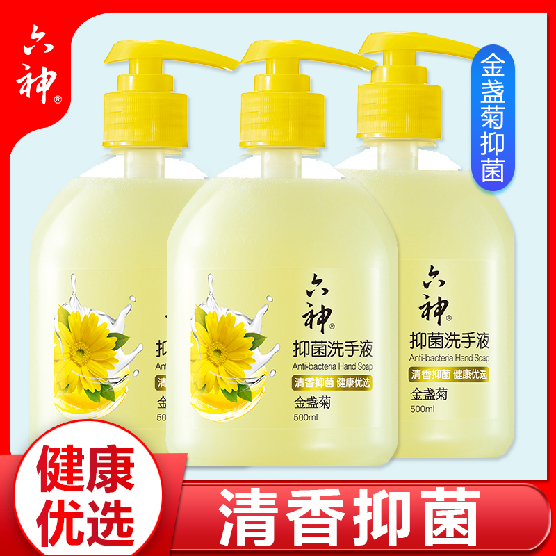 3瓶六神洗手液金盏菊洁净保湿 学生宿舍 滋润抑菌儿童可用500ml正品
