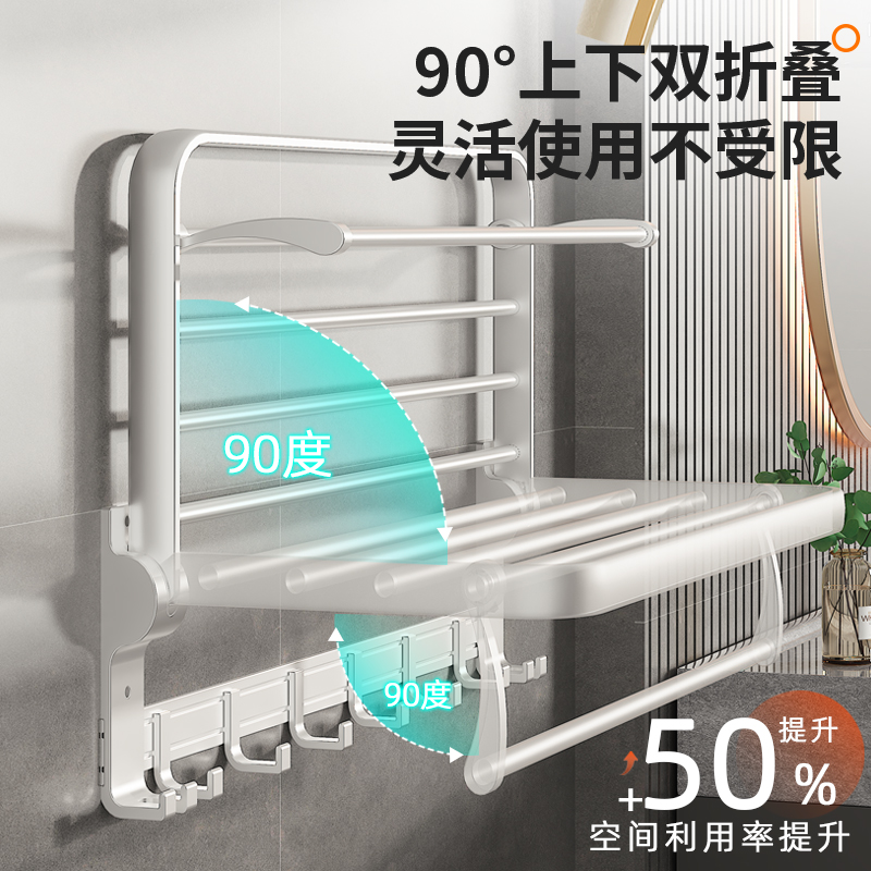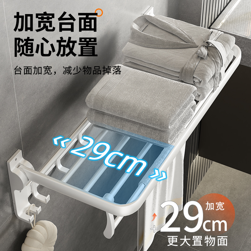 毛巾架卫生间浴室置物架浴巾架一体挂架套件厕所架子免打孔太空铝