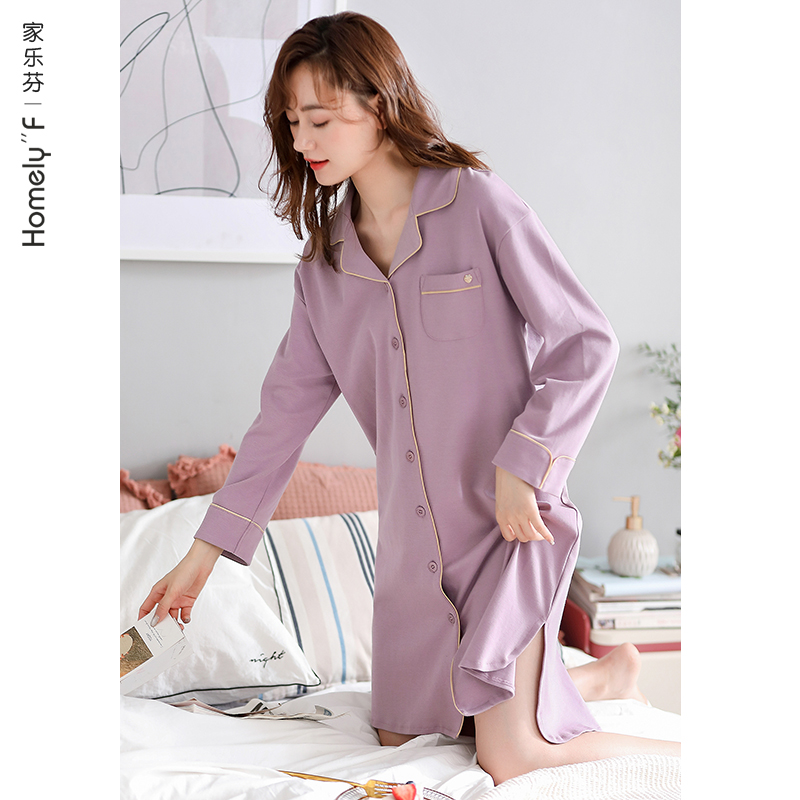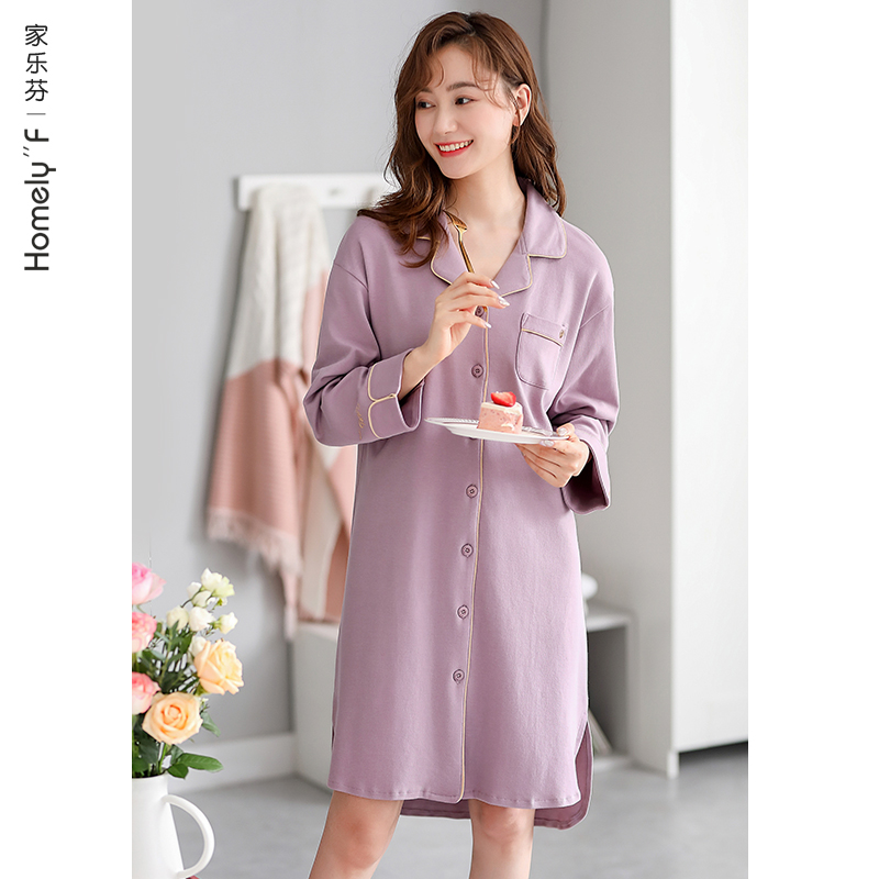 浴袍秋冬家居服 睡衣休闲慵懒风睡裙大码 轩靓睡袍女春秋季 纯棉长袖