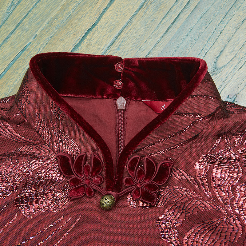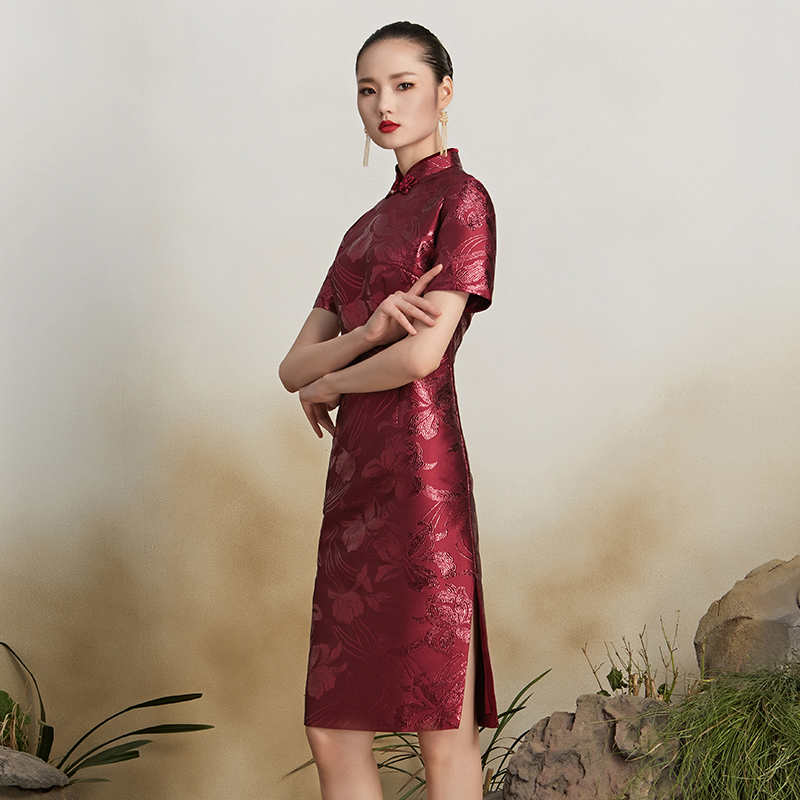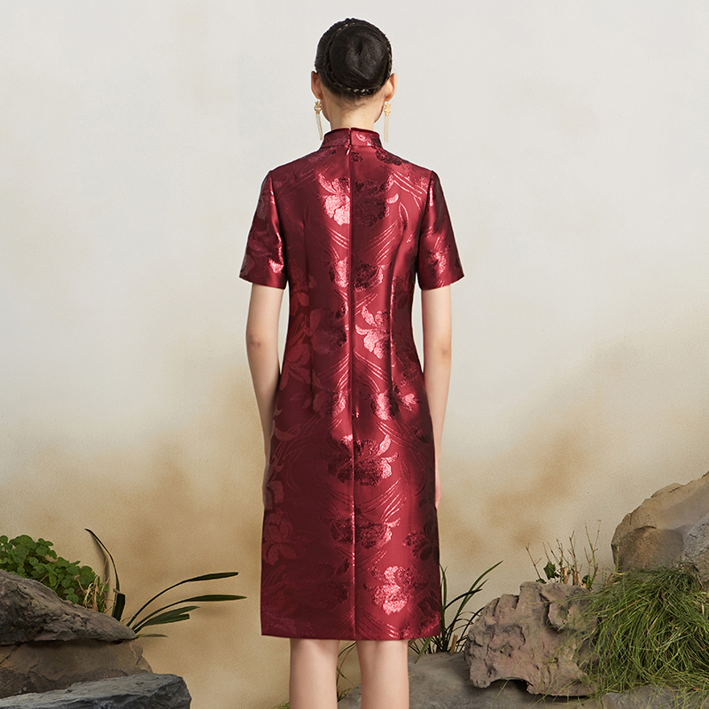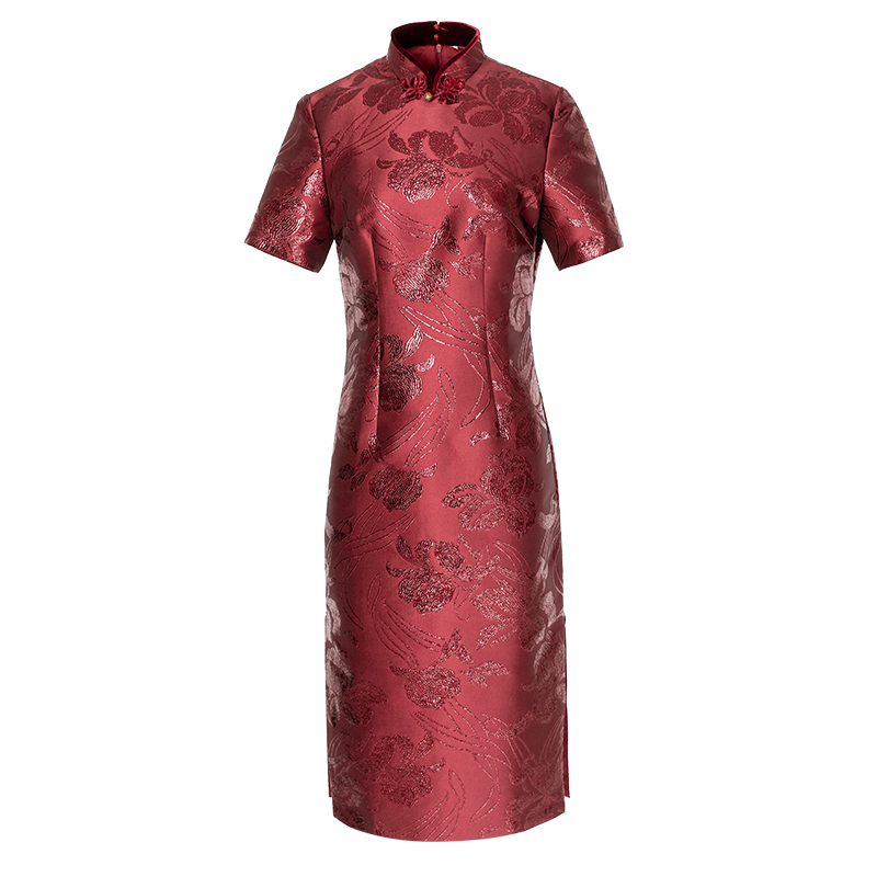 气质大码 红色提花显瘦旗袍微胖新中式 东方美学 连衣裙 babes