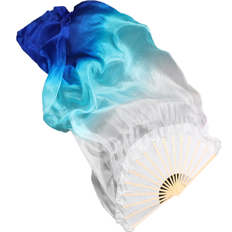 真丝舞蹈扇子广场舞渐变色长飘古典中国风长稠扇三色跳舞专用道具