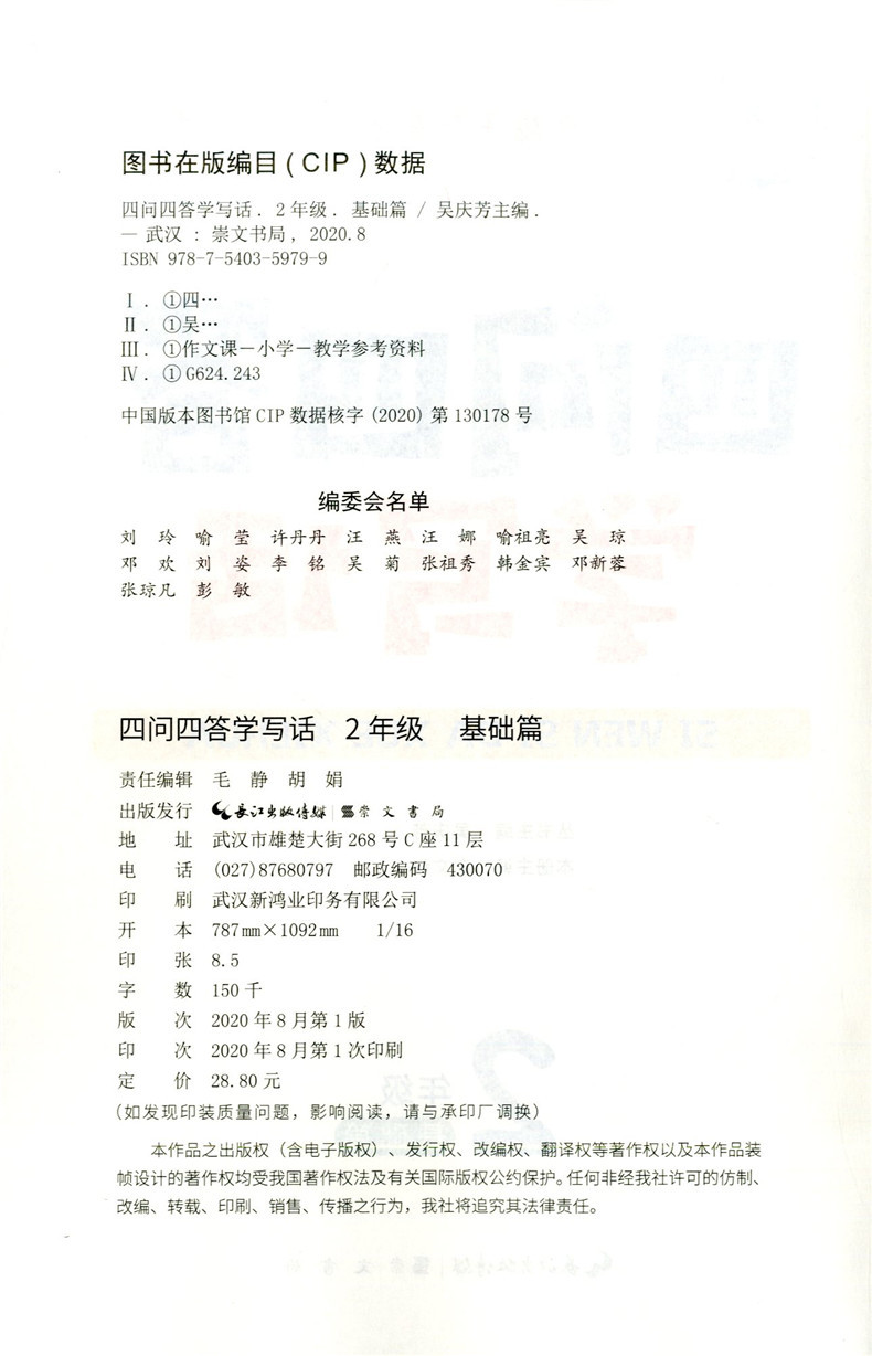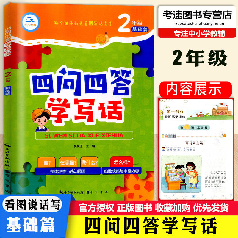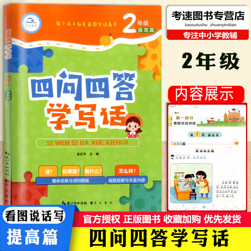 崇文教育 提高篇共2本小学生2年级看图说话写话训练练习写作启蒙连词成句趣味学习教辅资料书 四问四答学写话二年级基础篇