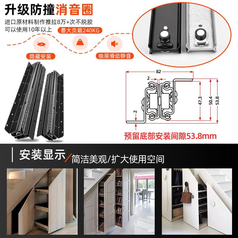 固特不锈钢抽屉轨道三节轨加厚缓冲阻尼静音导轨橱柜键盘托滑轨