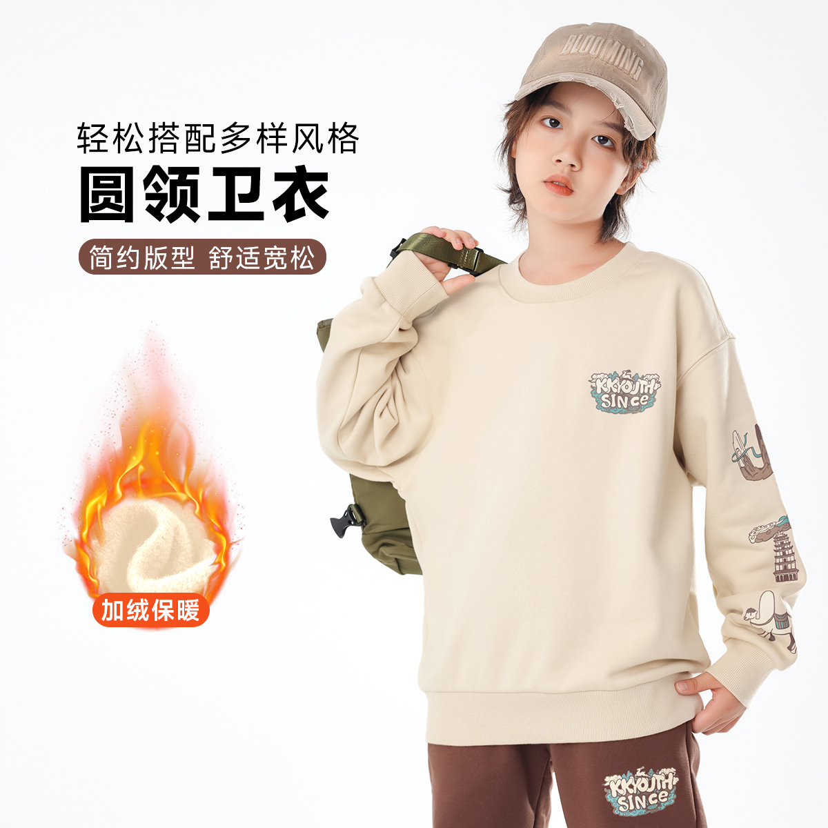 绒衫 2025秋冬新款 男童洋气圆领卫衣加绒加厚保暖学生上衣儿童童装