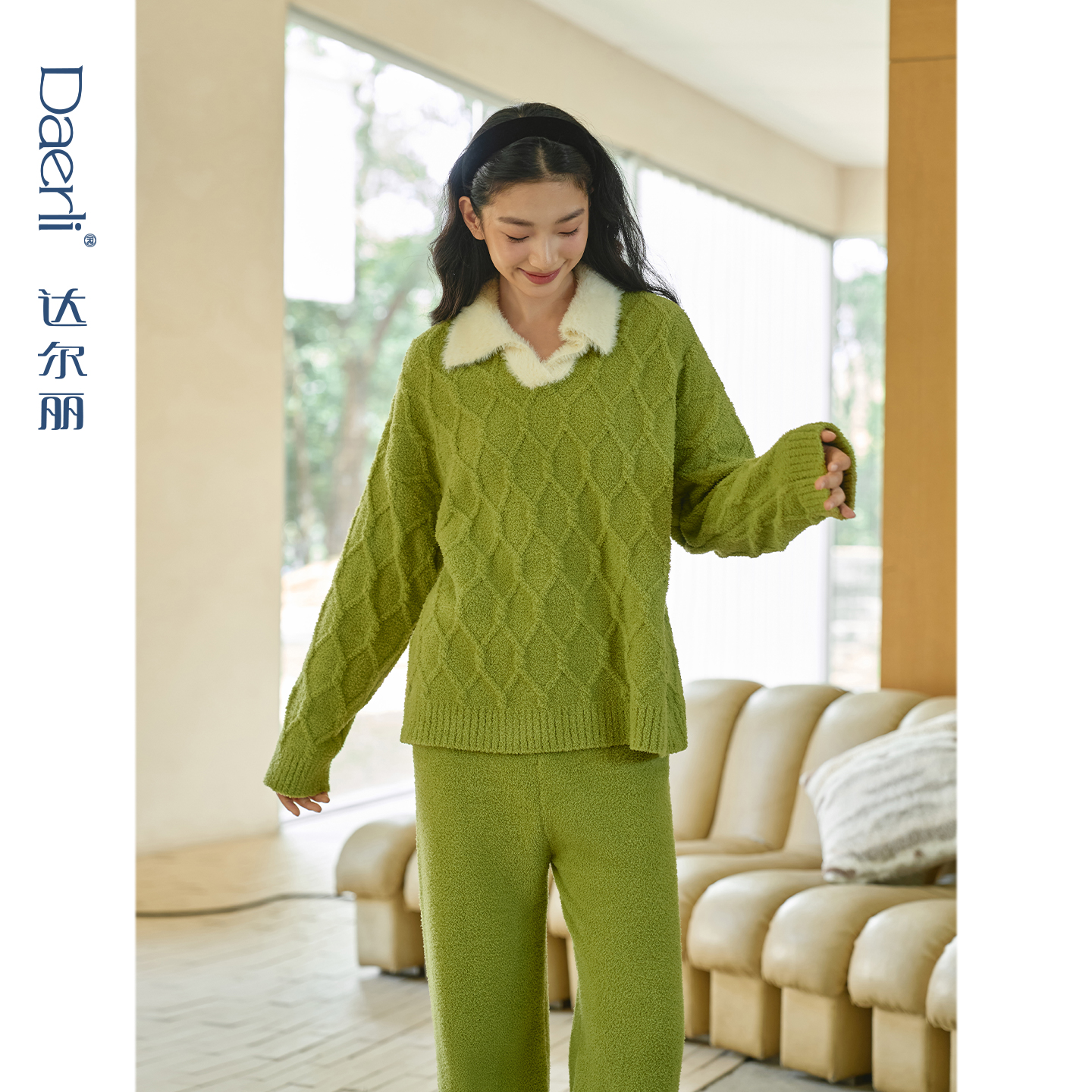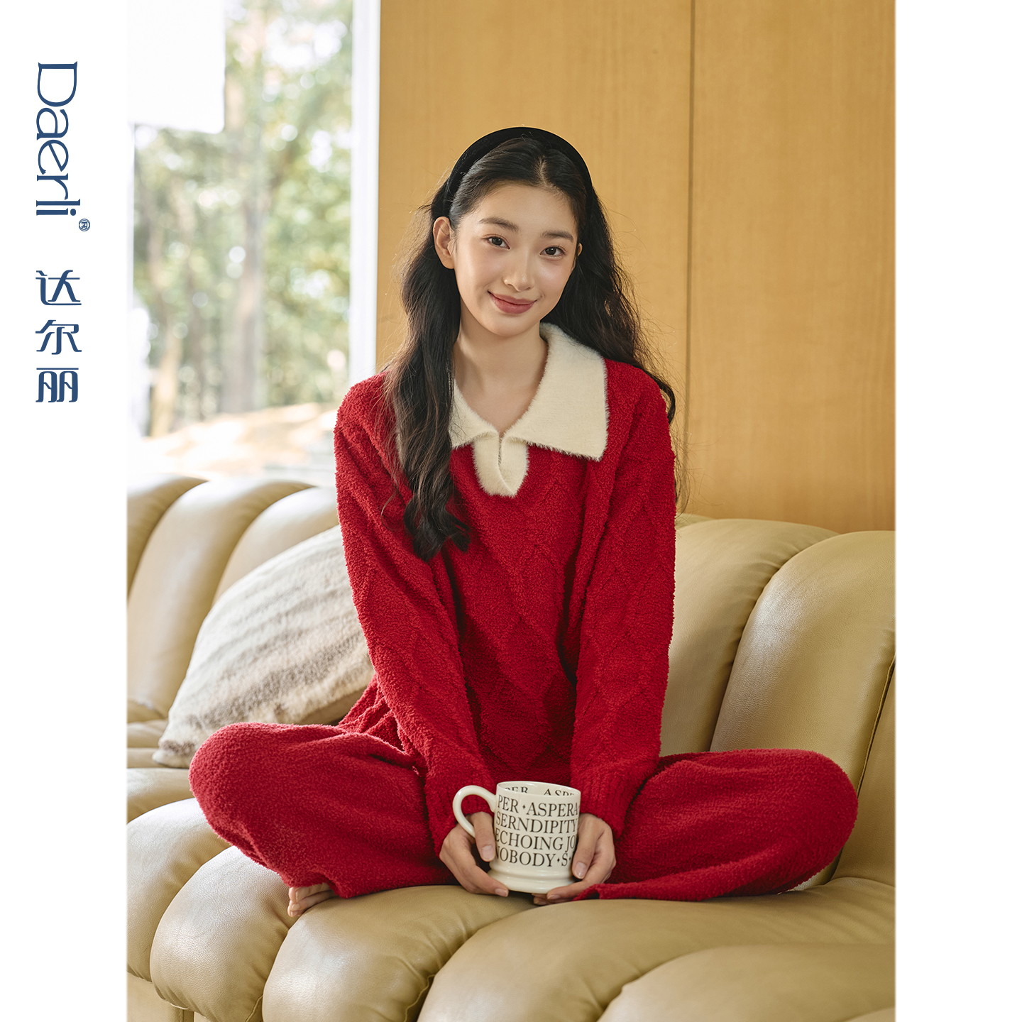 家居服套装 长袖 半边绒保暖加绒睡衣女秋冬2025新款 达尔丽出众
