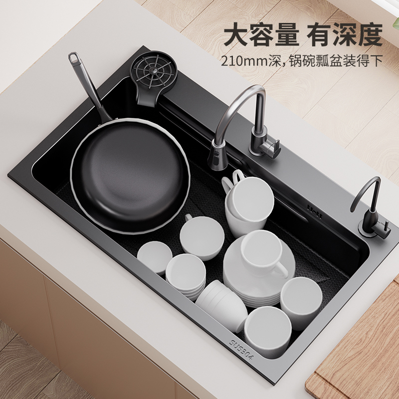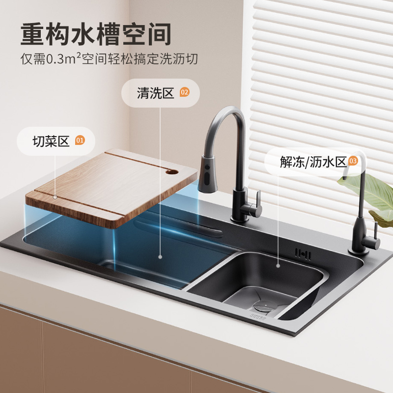 厨房304不锈钢水槽大单槽洗菜盆洗碗槽家用台中台下手工水池加厚