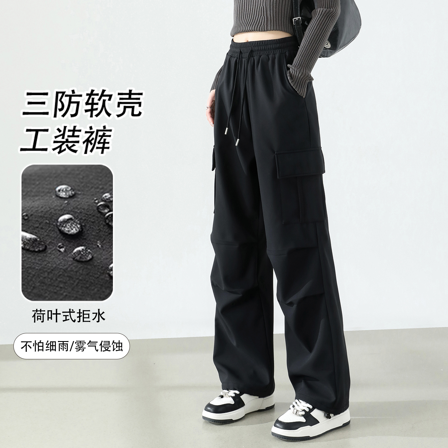 休闲阔腿卫裤 高腰垂感显瘦春秋直筒窄版 女夏2025年新款 黑色运动裤
