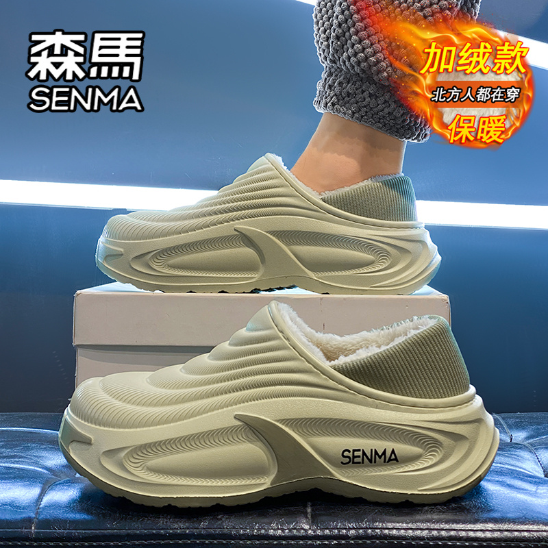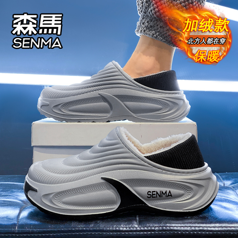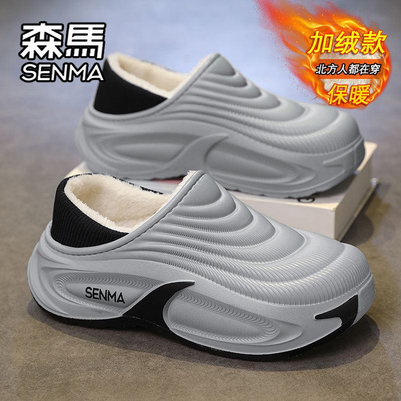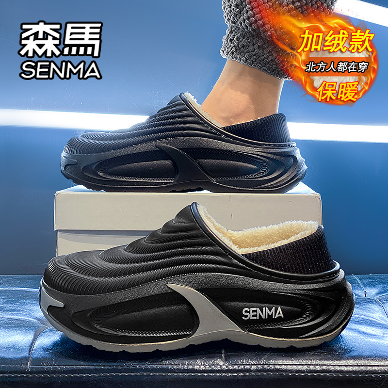 软底包跟棉鞋 外穿防水防滑居家室内加绒保暖大码 冬季 森马棉拖男款