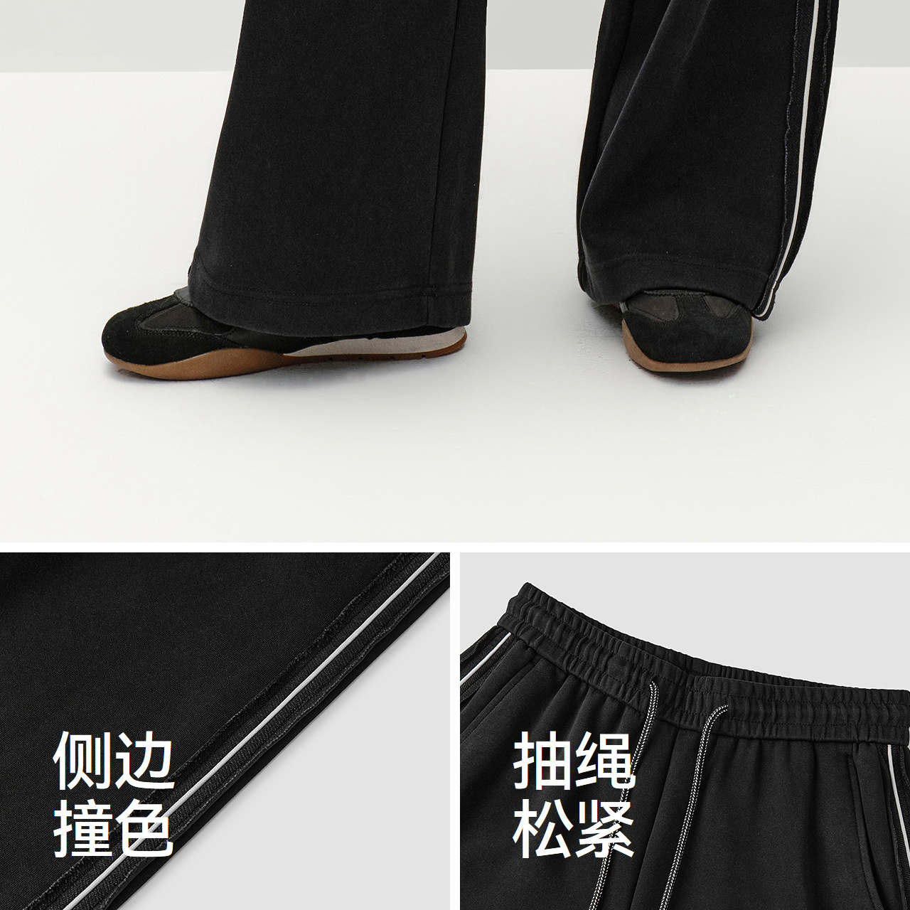 ins潮复古运动风显腿长长裤 撞色拼接宽松阔腿裤 女冬季 森马休闲裤