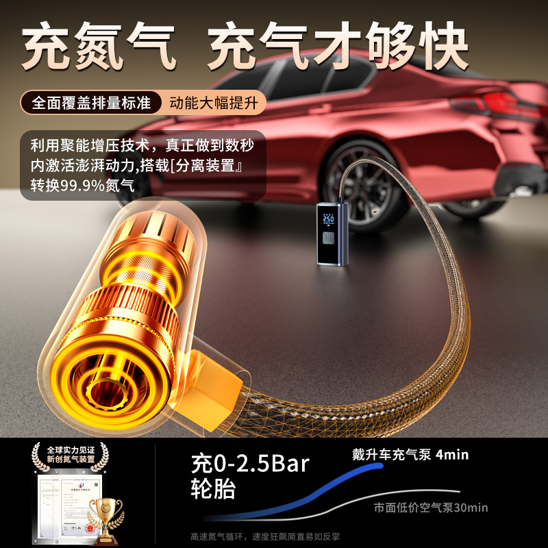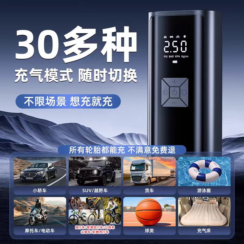 车载无线充气泵车用便携式 汽车用打气泵电动轿车轮胎高压打气筒宝
