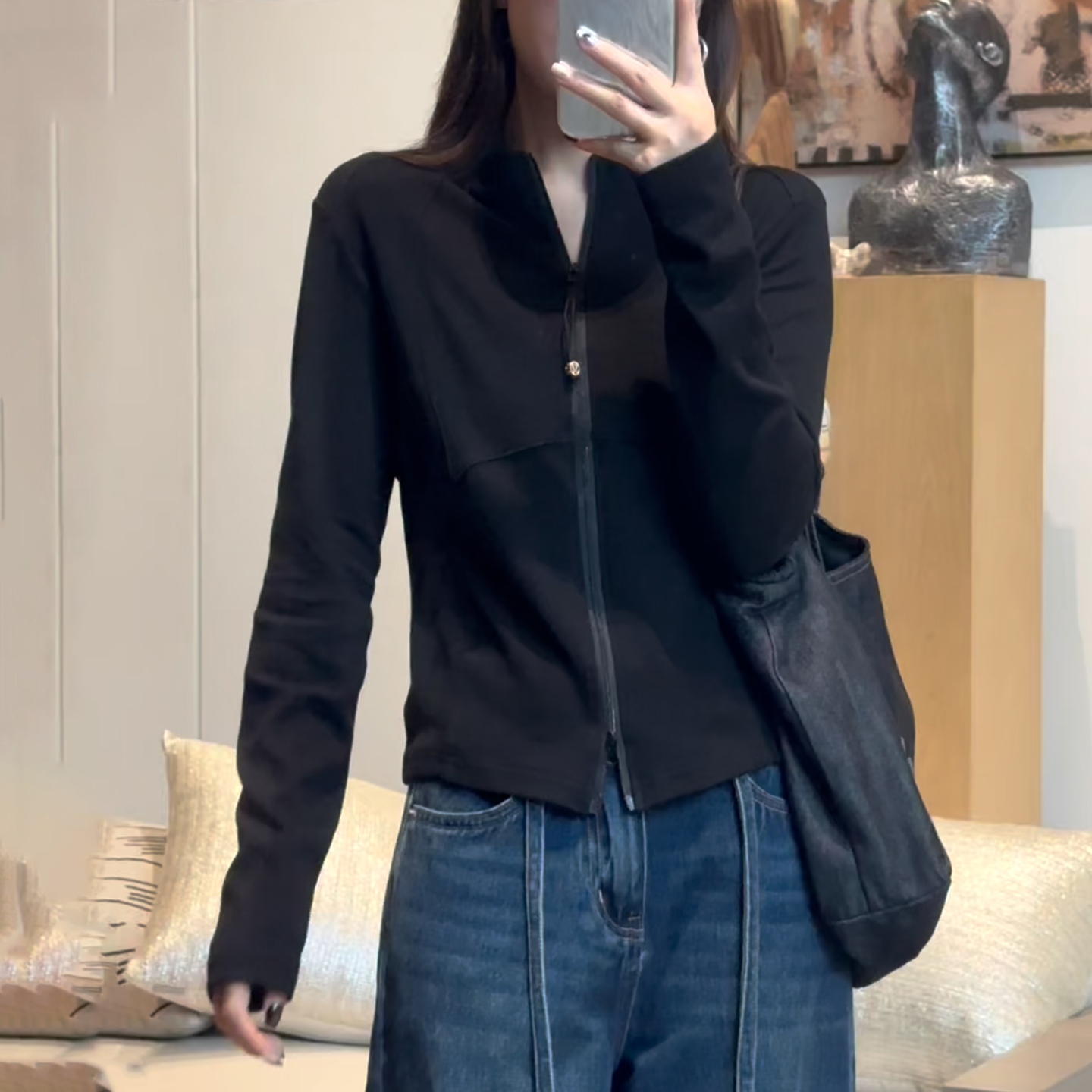 秋冬新款 开衫 修身 收腰上衣早秋穿搭美式 短款 灰色连帽卫衣外套女款
