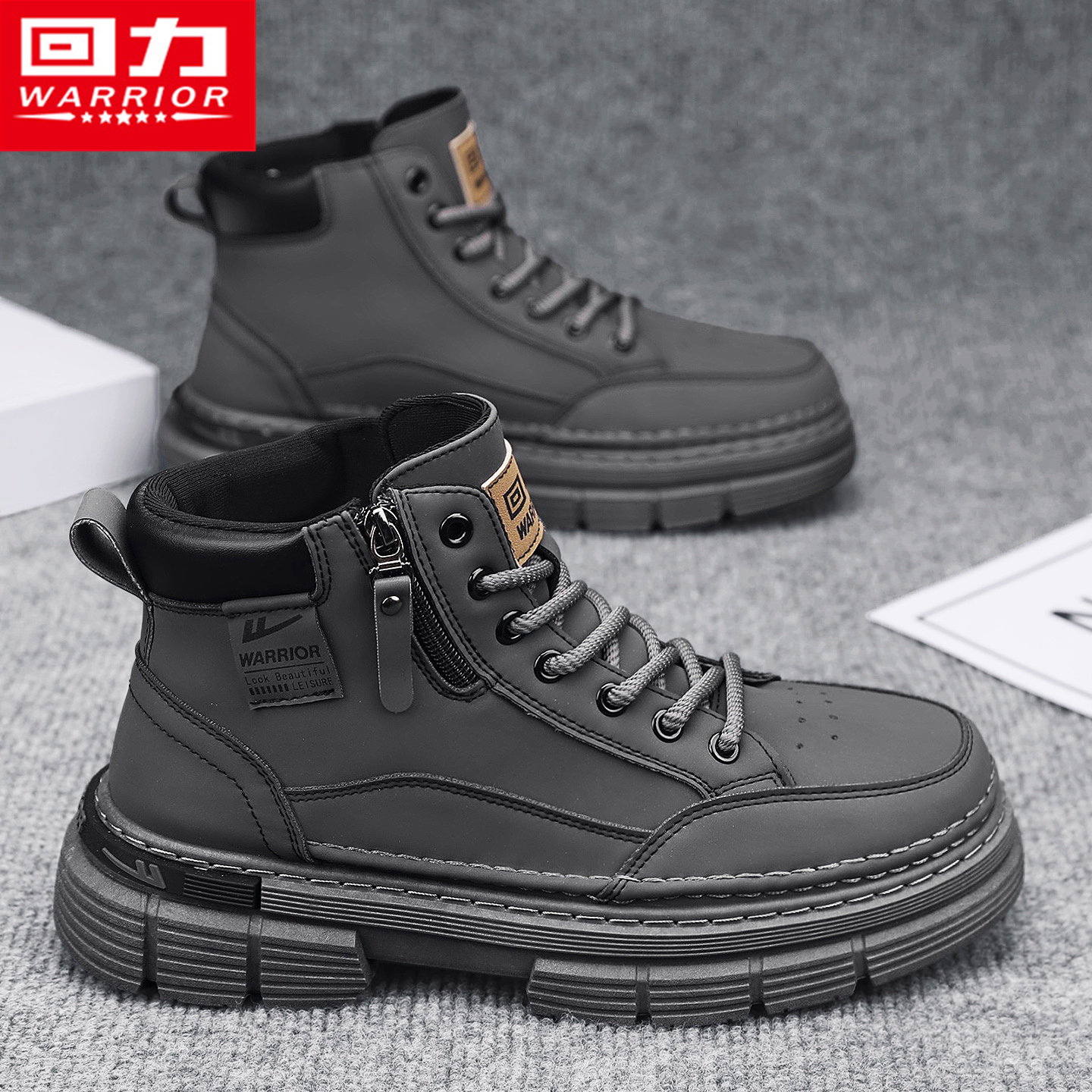靴子 真皮防水厚底增高工装 森马马丁靴男秋季 高帮百搭休闲白色板鞋